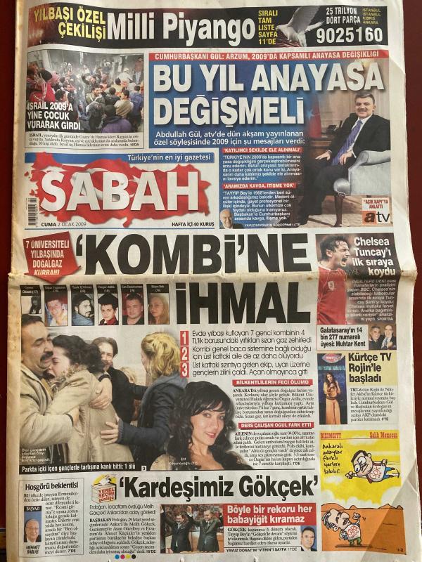 SABAH GAZETESİ DOĞUM GÜNÜ HEDİYESİ - 2 OCAK 2009 - TAM TAKIM 26 SAYFADIR -Abdullah Gül - Tuncay - Mutlu Yılmaz - Muhtar Kent - Adnan Polat - Baros - Hakan Şükür - Seric - Tjikuzu - Lucas Neill - Ersin Özince - Hasan Köktaş - Barış Aydın - Ünal Sanlı - Kemal Unakıtan - Bülent Özürgün - Fortis Yatırım - Hanefi Doğan - Ekrem Demirtaş - Nouriel Roubini - Bu yıl anayasa değişmeli - Kombi’ne ihmal - Kardeşimiz Gökçek - En iyisi Fener’di - Belözoğlu’ndan ikinci imza - Gölgesinden çekinmedim - West Ham teklif bekliyor - Seriç diretiyor Tjikuzu bekliyor - Gaz krizi yine kapıya dayandı - Kurtuluşun formülü inşaat ile Körfez sermayesinde saklı - Enflasyon korkutmayacak büyüme-işsizlik can yakacak - ABD Hazinesi Kurtarma Fonu’nun ilk dilimini aştı - Karikatür adı: Bizimcity - Çizer: Salih Memecan-Eriş Kuyumcuoğlu - Özgür Atilla - Oğuz Tosunhan - Tarık Yılmaz - Büşra Dök - Can Öztosun - Ceren Okkalı - Mehmet Barlas - Yedi üniversiteli doğalgaz kurbanı - İhmaller zinciri - Saat saat facia - Otopsi, DİNÇ BİLGİN tarafından kaleme alınmıştır. Kitap MEDİ GRUP tarafından yayınlanmıştır. 26 sayfadır. SABAH GAZETESİ DOĞUM GÜNÜ HEDİYESİ - 2 OCAK 2009 - TAM TAKIM 26 SAYFADIR -Abdullah Gül - Tuncay - Mutlu Yılmaz - Muhtar Kent - Adnan Polat - Baros - Hakan Şükür - Seric - Tjikuzu - Lucas Neill - Ersin Özince - Hasan Köktaş - Barış Aydın - Ünal Sanlı - Kemal Unakıtan - Bülent Özürgün - Fortis Yatırım - Hanefi Doğan - Ekrem Demirtaş - Nouriel Roubini - Bu yıl anayasa değişmeli - Kombi’ne ihmal - Kardeşimiz Gökçek - En iyisi Fener’di - Belözoğlu’ndan ikinci imza - Gölgesinden çekinmedim - West Ham teklif bekliyor - Seriç diretiyor Tjikuzu bekliyor - Gaz krizi yine kapıya dayandı - Kurtuluşun formülü inşaat ile Körfez sermayesinde saklı - Enflasyon korkutmayacak büyüme-işsizlik can yakacak - ABD Hazinesi Kurtarma Fonu’nun ilk dilimini aştı - Karikatür adı: Bizimcity - Çizer: Salih Memecan-Eriş Kuyumcuoğlu - Özgür Atilla - Oğuz Tosunhan - Tarık Yılmaz - Büşra Dök - Can Öztosun - Ceren Okkalı - Mehmet Barlas - Yedi üniversiteli doğalgaz kurbanı - İhmaller zinciri - Saat saat facia - Otopsi adlı eser Türkçe dilindedir.