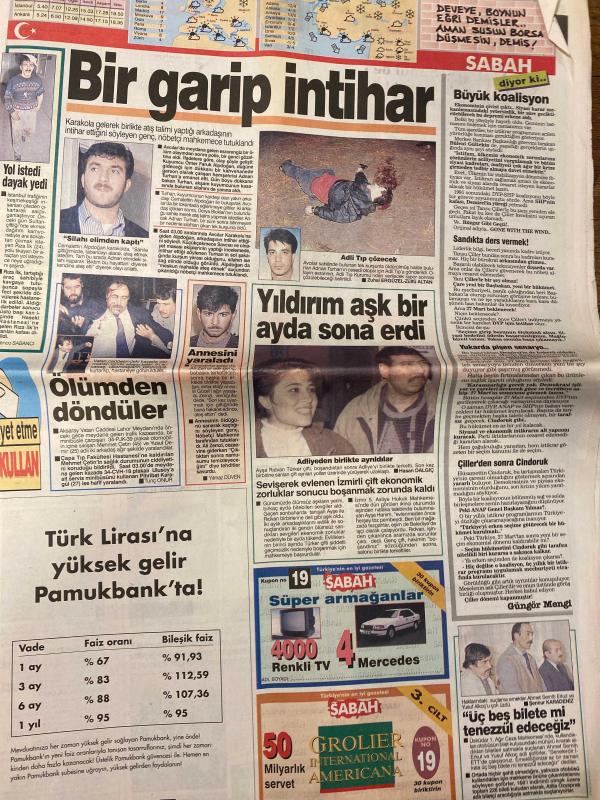 SABAH GAZETESİ DOĞUM GÜNÜ HEDİYESİ - 2 ŞUBAT 1994 - TAM TAKIM 40 SAYFADIR -Cindoruk-Çiller-Butto-Korcan-Yıldırım-Çakmur-Gültekin-Hasan Cemal-Cengiz Çandar-Güneri Cıvaoğlu-Fatih Çekirge-Şenol Güneş-Cevat Kula-Suat-Stumpf-Rıdvan-Mecnur-Bülent-Emre-Oğuz-Murat Deveci-Osieck-Sezen Aksu-Sertab Levent-Erener Yüksel-Bülent Ersoy-Kayahan-Metin Şentürk-Hayva Kopan-Mehtap Ar-Bülent Serttaş-Özdemir Erdoğan-Atilla Kaya-Ahmet Girgin-Serdar Ortaç-Özlem-Altan-Altınay-Gülengül İstifada Cindoruk parmağı-Tehlikeli gezi-27 Mart’tan sonra büyük koalisyon-Ekonomide yeni paket-Yıldırım ziyaret-Aldanma Kartal-Trabzon havalarda-Olay sözler-Mikser değilim-Rıdvan 15 gün sonra imtihandan geçecek-Stumpf 1 ay yok-Fener’de operasyon-Sabataj yok-Bilgisayar dünyasına otorite geldi-Günco Sabancı-Tuncay Onur-Yılmaz Dönmez-Adli Tıp Özgeozek-Zulfi Buzgulu-Zafer Altıtan-Ayhan Yıldırım-Güngör Mengi Bir garip intihar-Yol istedi dayak yedi-Ölümden döndüler-Annesini yaraladı-Yıldırım aşk bir ayda sona erdi-Büyük koalisyon-Çi, DİNÇ BİLGİN tarafından kaleme alınmıştır. Kitap MEDİ GRUP tarafından yayınlanmıştır. 40 sayfadır. SABAH GAZETESİ DOĞUM GÜNÜ HEDİYESİ - 2 ŞUBAT 1994 - TAM TAKIM 40 SAYFADIR -Cindoruk-Çiller-Butto-Korcan-Yıldırım-Çakmur-Gültekin-Hasan Cemal-Cengiz Çandar-Güneri Cıvaoğlu-Fatih Çekirge-Şenol Güneş-Cevat Kula-Suat-Stumpf-Rıdvan-Mecnur-Bülent-Emre-Oğuz-Murat Deveci-Osieck-Sezen Aksu-Sertab Levent-Erener Yüksel-Bülent Ersoy-Kayahan-Metin Şentürk-Hayva Kopan-Mehtap Ar-Bülent Serttaş-Özdemir Erdoğan-Atilla Kaya-Ahmet Girgin-Serdar Ortaç-Özlem-Altan-Altınay-Gülengül İstifada Cindoruk parmağı-Tehlikeli gezi-27 Mart’tan sonra büyük koalisyon-Ekonomide yeni paket-Yıldırım ziyaret-Aldanma Kartal-Trabzon havalarda-Olay sözler-Mikser değilim-Rıdvan 15 gün sonra imtihandan geçecek-Stumpf 1 ay yok-Fener’de operasyon-Sabataj yok-Bilgisayar dünyasına otorite geldi-Günco Sabancı-Tuncay Onur-Yılmaz Dönmez-Adli Tıp Özgeozek-Zulfi Buzgulu-Zafer Altıtan-Ayhan Yıldırım-Güngör Mengi Bir garip intihar-Yol istedi dayak yedi-Ölümden döndüler-Annesini yaraladı-Yıldırım aşk bir ayda sona erdi-Büyük koalisyon-Çi adlı eser Türkçe dilindedir.