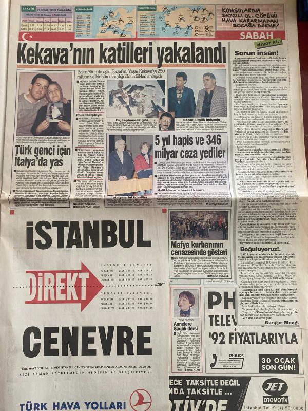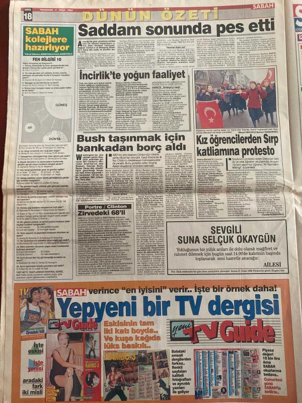 SABAH GAZETESİ DOĞUM GÜNÜ HEDİYESİ - 21 OCAK 1993 - TAM TAKIM 22 SAYFADIR -Safa Giray-Cengiz Altınkaya-Saddam-Bush-Hasan Cemal-Salih Memecan-Sait Sökmen-Sabancı-Gordon Milne-Rıza-Recep Şeker-Rıdvan-Aygün Özipk-Hakan-Münevver Özipk-Süleyman Rodop-Faruk Süren-Ferhan Meleke-Trabzonspor-Yılmaz-İskender Günen-Milne-Vugrinec-Campbell-Alagas-Löw-Erzik-Fatih Terim-Zeynel Güngör-Cem Uzan-Ümit-Yıldırım-Zeynel Güngör-Melek Şimşek-Özlem Çur-Güngör Mengi İki eski bakan Yüce Divan’da-Saddam pes etti-Gazeteler bayramda çıkacak-Dans hocasıyla yarıştı-Hürriyet’in sigorta palavrası-Mafya’nın gelini Aktüel’e konuştu-Bush evine taşınma kredisi aldı-Tarihle barış-Sabancı’nın dans şovu-Beşiktaş’tan umut kesilmez-Rıdvan 6 hafta oynayamayacak-Rıza’dan son ültimatom-Galatasaray’da forma savaşı-Trabzon “3” diyor-Efes’in önünde bir engel kaldı-Kekava’nın katilleri yakalandı-Türk genci için İtalya’da yas-5 yıl hapis ve 346 milyar ceza yediler-İstanbullular zehir soluyor-Kirlilik İzmir’i de tehdit ediyor-Erzincan, DİNÇ BİLGİN tarafından kaleme alınmıştır. Kitap MEDİ GRUP tarafından yayınlanmıştır. 22 sayfadır. SABAH GAZETESİ DOĞUM GÜNÜ HEDİYESİ - 21 OCAK 1993 - TAM TAKIM 22 SAYFADIR -Safa Giray-Cengiz Altınkaya-Saddam-Bush-Hasan Cemal-Salih Memecan-Sait Sökmen-Sabancı-Gordon Milne-Rıza-Recep Şeker-Rıdvan-Aygün Özipk-Hakan-Münevver Özipk-Süleyman Rodop-Faruk Süren-Ferhan Meleke-Trabzonspor-Yılmaz-İskender Günen-Milne-Vugrinec-Campbell-Alagas-Löw-Erzik-Fatih Terim-Zeynel Güngör-Cem Uzan-Ümit-Yıldırım-Zeynel Güngör-Melek Şimşek-Özlem Çur-Güngör Mengi İki eski bakan Yüce Divan’da-Saddam pes etti-Gazeteler bayramda çıkacak-Dans hocasıyla yarıştı-Hürriyet’in sigorta palavrası-Mafya’nın gelini Aktüel’e konuştu-Bush evine taşınma kredisi aldı-Tarihle barış-Sabancı’nın dans şovu-Beşiktaş’tan umut kesilmez-Rıdvan 6 hafta oynayamayacak-Rıza’dan son ültimatom-Galatasaray’da forma savaşı-Trabzon “3” diyor-Efes’in önünde bir engel kaldı-Kekava’nın katilleri yakalandı-Türk genci için İtalya’da yas-5 yıl hapis ve 346 milyar ceza yediler-İstanbullular zehir soluyor-Kirlilik İzmir’i de tehdit ediyor-Erzincan adlı eser Türkçe dilindedir.