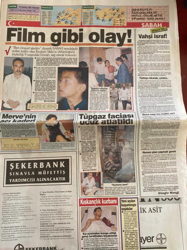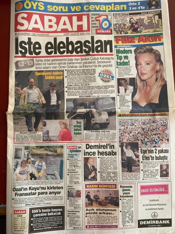 SABAH GAZETESİ DOĞUM GÜNÜ HEDİYESİ - 22 HAZİRAN 1992 - TAM TAKIM 18 SAYFADIR -Şevket Çubuk-Ömer Odabaşı-Filiz Akın-Hasan Demir-Süleyman Demirel-Theodorakis-Ramazan Öztürk-Mazlum Kiper-Sarışın Afet-Max Zarman-Laurence Olivier-Bruce Boxleitner-Lindsay Wagner-Marlie Matlin-Erdoğan Sevgin-Mesut Arda-Sebo-Turgay Şeren-Yavuz Gürel-Riedle-Yavuz Gönenç-Nükhet Duru-Çiğdem Yücesoy-Zülfü Livaneli-Holly Simi-Roberto Mancini-Süleyman Demirel-Bülent Ecevit İşte elebaşları-Paralar nerede?-Suç ortağı tefeci kadın-Demirel’in ince hesabı-Ege’nin 2 yakası Efes’te buluştu-Özal’ın Koyu’nu kirleten Fransızlar para arıyor-SSK’lı hasta başının çaresine bakacak-Bizimcity-Modern Tıp ve Kadın-Basın Dünyası-Açık oturumun perde arkası-Arkası Yarın’larda 3 olay-Çılgın ihtiras-Yalnızca Maria-Yalan Rüzgarı-Rodrigo’nun gücü-Ölüme Yolculuk-Karanlık Adalet-Teleon’da Eşref Kolçak filmleri-3 yeni dizi daha-Sessiz Ortak-Patagonya Kralı-Cententen Bin-Kızlar Yurdu-Süheyla’nın başı dertte-Sizinzkiler-Novak Operasyonu-Fener N adlı eser, Kitap > Süreli Yayınlar > Gazeteler > Türkiye > Genel > Günlük kategorisinde İkinci El olarak satıştadır.