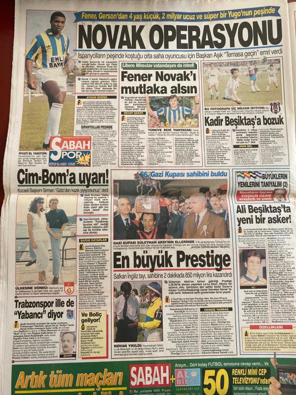 SABAH GAZETESİ DOĞUM GÜNÜ HEDİYESİ - 22 HAZİRAN 1992 - TAM TAKIM 18 SAYFADIR -Şevket Çubuk-Ömer Odabaşı-Filiz Akın-Hasan Demir-Süleyman Demirel-Theodorakis-Ramazan Öztürk-Mazlum Kiper-Sarışın Afet-Max Zarman-Laurence Olivier-Bruce Boxleitner-Lindsay Wagner-Marlie Matlin-Erdoğan Sevgin-Mesut Arda-Sebo-Turgay Şeren-Yavuz Gürel-Riedle-Yavuz Gönenç-Nükhet Duru-Çiğdem Yücesoy-Zülfü Livaneli-Holly Simi-Roberto Mancini-Süleyman Demirel-Bülent Ecevit İşte elebaşları-Paralar nerede?-Suç ortağı tefeci kadın-Demirel’in ince hesabı-Ege’nin 2 yakası Efes’te buluştu-Özal’ın Koyu’nu kirleten Fransızlar para arıyor-SSK’lı hasta başının çaresine bakacak-Bizimcity-Modern Tıp ve Kadın-Basın Dünyası-Açık oturumun perde arkası-Arkası Yarın’larda 3 olay-Çılgın ihtiras-Yalnızca Maria-Yalan Rüzgarı-Rodrigo’nun gücü-Ölüme Yolculuk-Karanlık Adalet-Teleon’da Eşref Kolçak filmleri-3 yeni dizi daha-Sessiz Ortak-Patagonya Kralı-Cententen Bin-Kızlar Yurdu-Süheyla’nın başı dertte-Sizinzkiler-Novak Operasyonu-Fener N, DİNÇ BİLGİN tarafından kaleme alınmıştır. Kitap MEDİ GRUP tarafından yayınlanmıştır. 18 sayfadır. SABAH GAZETESİ DOĞUM GÜNÜ HEDİYESİ - 22 HAZİRAN 1992 - TAM TAKIM 18 SAYFADIR -Şevket Çubuk-Ömer Odabaşı-Filiz Akın-Hasan Demir-Süleyman Demirel-Theodorakis-Ramazan Öztürk-Mazlum Kiper-Sarışın Afet-Max Zarman-Laurence Olivier-Bruce Boxleitner-Lindsay Wagner-Marlie Matlin-Erdoğan Sevgin-Mesut Arda-Sebo-Turgay Şeren-Yavuz Gürel-Riedle-Yavuz Gönenç-Nükhet Duru-Çiğdem Yücesoy-Zülfü Livaneli-Holly Simi-Roberto Mancini-Süleyman Demirel-Bülent Ecevit İşte elebaşları-Paralar nerede?-Suç ortağı tefeci kadın-Demirel’in ince hesabı-Ege’nin 2 yakası Efes’te buluştu-Özal’ın Koyu’nu kirleten Fransızlar para arıyor-SSK’lı hasta başının çaresine bakacak-Bizimcity-Modern Tıp ve Kadın-Basın Dünyası-Açık oturumun perde arkası-Arkası Yarın’larda 3 olay-Çılgın ihtiras-Yalnızca Maria-Yalan Rüzgarı-Rodrigo’nun gücü-Ölüme Yolculuk-Karanlık Adalet-Teleon’da Eşref Kolçak filmleri-3 yeni dizi daha-Sessiz Ortak-Patagonya Kralı-Cententen Bin-Kızlar Yurdu-Süheyla’nın başı dertte-Sizinzkiler-Novak Operasyonu-Fener N adlı eser Türkçe dilindedir.