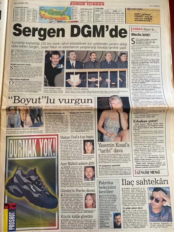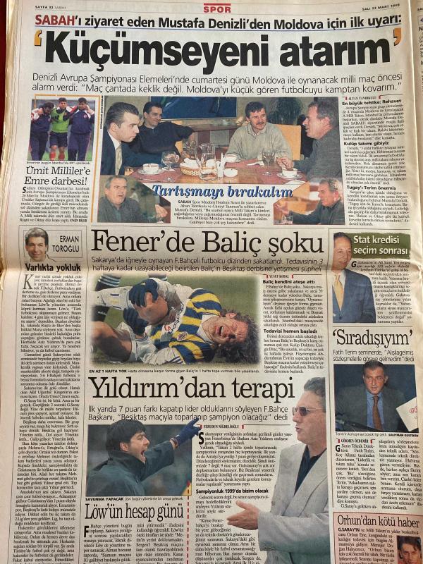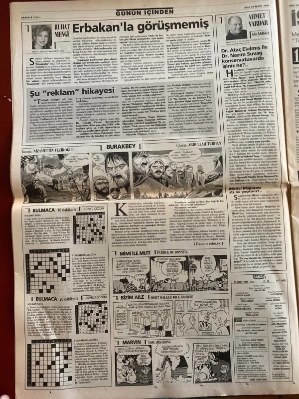 SABAH GAZETESİ DOĞUM GÜNÜ HEDİYESİ - 23 MART 1999 - TAM TAKIM 34 SAYFADIR -Erbakan-Bülent Ecevit-Kutan-Çetin-Yavuz Donat-Refik Durbaş-Feldkamp-Sifo-Del Solar-Campbell-Milne-Erman Toroğlu-Baliç-Yıldırım-Löw-Ruhat Mengi-Ahmet Vardar-Abdullah Turhan-Nazımettin Veziroğlu-Patrick Mc Donnell-Mort Walker-Dick Browne-Tom Armstrong-Sergen-Sedat Peker-Hakan Ural-Azer Bülbül-Gülben Ergen-Yasemin Koşal-Güngör Mengi Fazilet’i de yaktı-Kanlı kanal susturuldu-Saat 09.30 ölüm vakti-Bu yarışı kazanacağız-Kartal’ın dirilişi-Milne’in ince hesabı-Küçümseyeni atarım-Fener’de Baliç şoku-Yıldırım’dan terapi-Erbakan’la görüşmemiş-Sergen DGM’de-Boyut’lu vurgun-Hakan Ural’a 4 ay hapis-Azer Bülbül askere gitti-Gülben Ergen’in Porsche davası-Yasemin Koşal’a tarihi dava-İlaç sahtekârı-dr.Babuna-Bebelere özel kaset-Oscar bol sürprizli olsun-James coburn-Judi Dench-Gwyneth Paltrow-Roberto Benigni-Zülfü Livaneli-Çocuklar dayak mağduru-Murat Birsel-Refik Durbaş-Sabancı Carrefoursa’nın temeli-Burhan Özfatura adlı eser, Kitap > Süreli Yayınlar > Gazeteler > Türkiye > Genel > Günlük kategorisinde İkinci El olarak satıştadır.