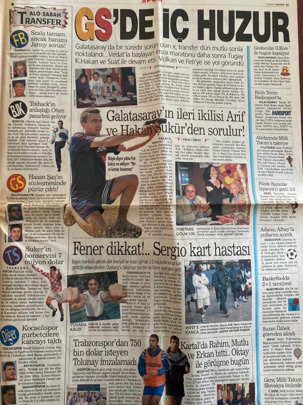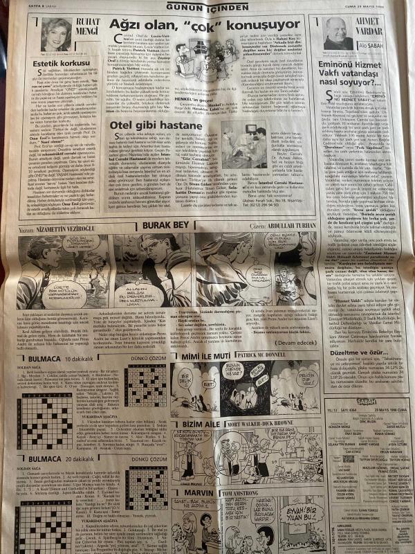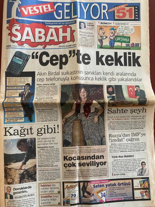 SABAH GAZETESİ DOĞUM GÜNÜ HEDİYESİ - 29 MAYIS 1998 -TAM TAKIM 36 SAYFADIR -Akın Birdal-Berina Yılmaz-Nurdan Behrend-Salih Memecan-Halim Çorbalı-Selahattin Duman-Hasan Cemal-Hakan Şükür-Arif-Suat-Vedat-Tugay-Volkan-Feti-Janny-Scala-Toshack-Suker-Sergio-Oktay-Mutlu-Rahim-Erkan-Lokas-Haydar Tanışan-Erman Toroğlu-Rıdvan Yelekçi-Lokman-Dağdeviren-Lokas Ates-Sefer Zengin-Hanım Çiftçi-Fatma Tatar-Meral Selma Karaca-Serin Toydiyoz-Güngör Mengi “Cep”te keklik-Kağıt gibi-Kocasından çok seviliyor-Sahte şeyh-Rusya’dan IMF’ye imdat çağrısı-Türk-Rus ilişkileri-Doruklarda gezerim-GS’de iç huzur-Fener dikkat Sergio kart hastası-Son şampiyon Sakarya-Adapazarı uyumadı-Nasipsiz boğa-Öldüren fedakarlık-3 bilezik için-Tedavi paramı bulun-Acı kadının adalet isyanı-Fato hakim karşısında Bizimcity-Salih Memecan Karikatür— Türk rus ilişkileri-Hasan Cemal-emekliye Kasım müjdesi-Halk onu çok seviyor-Mesut Yılmaz-tilbe’te yedi yıl-Titanic -ch tuhaf soruşturma-ses tiyatrosu-ferhanşensoy-Orhan Gencebay-prestige s adlı eser, Kitap > Süreli Yayınlar > Gazeteler > Türkiye > Genel > Günlük kategorisinde İkinci El olarak satıştadır.
