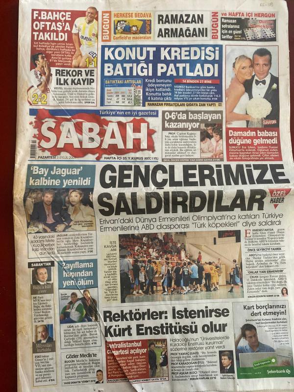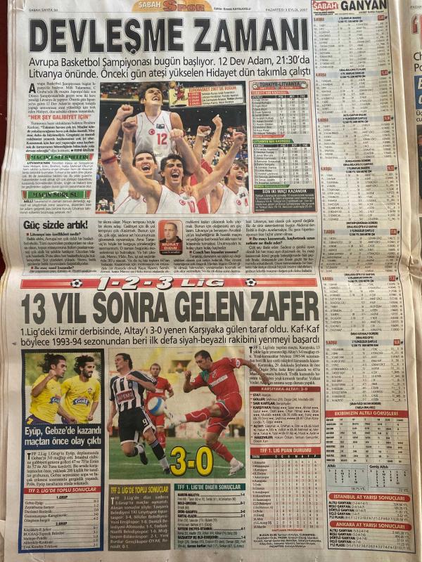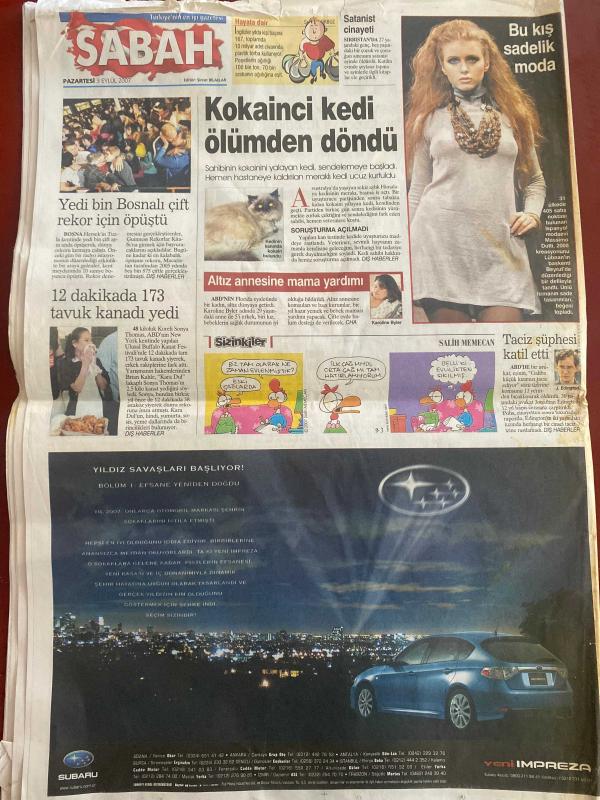 SABAH GAZETESİ DOĞUM GÜNÜ HEDİYESİ - 3 EYLÜL 2007 - TAM TAKIM 40 SAYFADIR -Gençlerimize saldırdılar-Mete küçükberber-Egemen Bağış-Ece erken-Tuncer Öztarhan-Hakan Şükür-Alex-Oğuz Özerden-Balçiçek Pamir-Karoline Byler-yedi bin bosnalı çift rekor için öpüştü-Jonathan Edington-Ahmet Çakar-Türk Futbolunda çürümenin sonu-Vestel, Manisaspor ve futboldan desteğini çekti-Totemci Feldkamp-Hakan Balta Sürprizi-Fatih tekke-Milli takım toplandı-Stepanov-Hakan Şükür 241 golle lig tarihinin en golcü futbolcusu oldu-Levent Tüzemen-Ebru Kılıçoğlu-Ufuk Ceylan panter gibi-Shabani Nonda ilk kez oynadı-Ömer üründül-Aziz yıldırım:Bu oyunla nasıl olacak-Zico-Gürcan Bilgiç-ertuğrul Sağlam-Beşiktaştan A milli takıma 6 futbolcu- Mert Nobre-Gürcan Bilgiç-Chelsea patronu Roman Abramovich-Elvan Abeylegesse-Filenin sultanları-Bahar Doğan’dan çok kötü derece-12 dev adam-Murat didin-Tülin Şahin-Tuğçe Güder-Ahu Tuğba-Gisele Bündchen-Naomi Campbell-Vanessa Hessier-Tarkan ve İbrahim tatlıses gerginliği-Çarşı grubu adlı eser, Kitap > Süreli Yayınlar > Gazeteler > Türkiye > Genel > Günlük kategorisinde İkinci El olarak satıştadır.