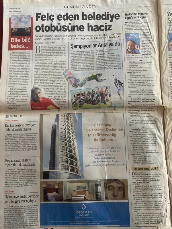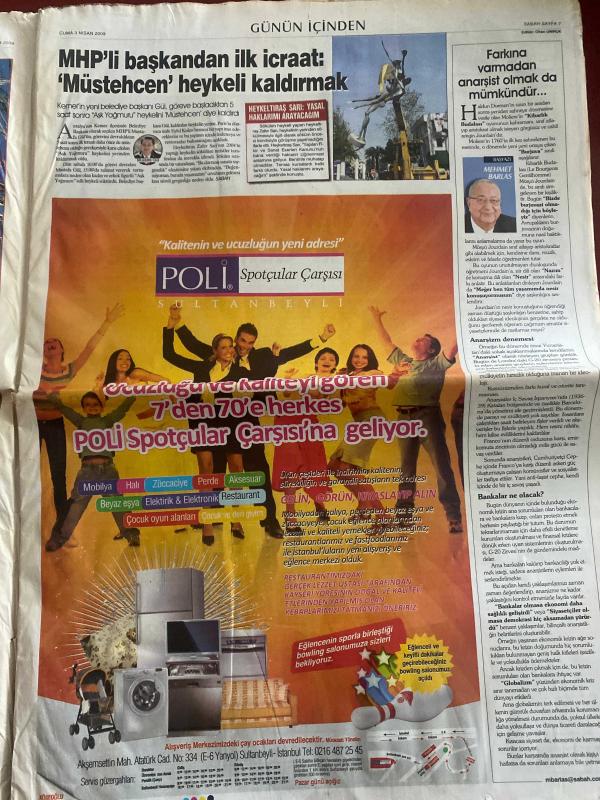 SABAH GAZETESİ DOĞUM GÜNÜ HEDİYESİ - 3 NİSAN 2009 - TAM TAKIM 40 SAYFADIR -Barack Obama-Recep Tayyip Erdoğan-Hatip Dicle-Leyla Zana-Celal Talabani-Mesut Barzani-Brad Pitt-Mehmet Barlas-Mehmet Şimşek-Ahmet Çakar-Ali Gültiken-İskender Günen-Fatih Terim-Levent Tüzemen-Mert Alas-Şebnem Schaeffer-Orhan Yurtseven-Hülya Koçyiğit-Nevra Serezli-Türkan Şoray-Fatma Girik-Engin Ardıç-Murat Savaş-Hüseyin Çulhalı-Orhan Uğuroğlu-Savaş Ay-Perihan Korkmaz Borsada çete operasyonu-Biz mucize severiz-Hatalı varsa benim-Yerli ‘Altın Kızlar’ eğlenceye başladı-Sevgili olma vaadiyle mobil dolandırıcılık-Milli maç dönüşü trafik kazası: 4 ölü-‘Sahte para basmayı cezaevinde öğrendim’-Tırtıl ayağa kalktı, G-20’den 1.1 trilyon $’lık paket çıktı-Obama’nın ‘canavarı’ Londra’ya dert oldu-Protokol iptal first lady kraliçeye sarıldı-Mali sistem için erken uyarı mekanizması Süpermarket-Çizgi Cengiz adlı eser, Kitap > Süreli Yayınlar > Gazeteler > Türkiye > Genel > Günlük kategorisinde İkinci El olarak satıştadır.