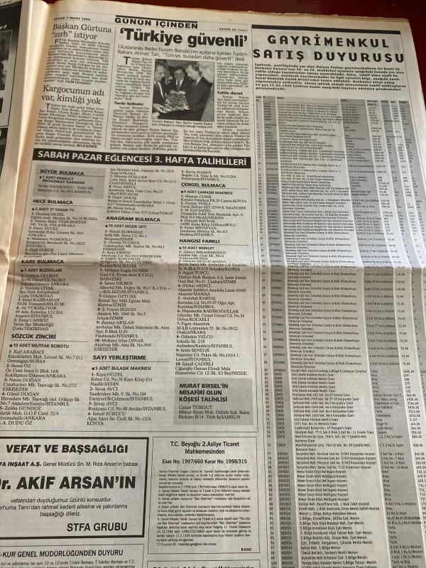 Temiz durumdadır. Sayfa kenarlarında zamana bağlı yıpranmalar görülebilir. Fotoğrafta görüldüğü gibidir. Gazetede kupon kesiği mevcuttur