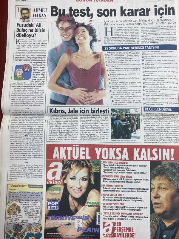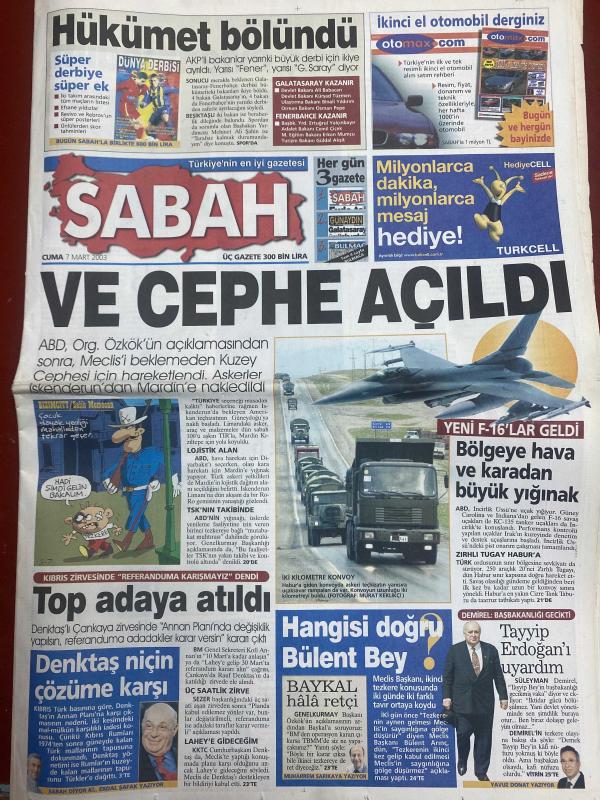 SABAH GAZETESİ DOĞUM GÜNÜ HEDİYESİ - 7 MART 2003- TAM TAKIM 36 SAYFADIR -Gülse Birsel - Aydın Doğan - Halit Cıngıllıoğlu - Vural Akışık - Emel Çakuboğlu - Ecevit - Servet Yıldırım - Çanakcı - Mete Tansu - Seks satar mı yasaklatır mı - Biri romantik öteki erotik - İşte skandal operasyonun kare ası - Suçu Ecevit’in üzerine attılar - Yeni yöneticileri tehdit ettiler - Faizde rahatlatan indirim - Hazine’nin başına Çanakcı geliyor - Önce dünyayla sonra vatandaşla buluştula—Ergun Babahan-İsmet İnönü-Mevhibe Hanım-Sevda Ferdağ-Mehmet Çalışkan-Tamer Yiğit-AKP’nin yanlışı-Hiç evlenmedim İnönü’ye aşıktım-Beni sevmediler yalnız beğendiler-Pusudaki Ali Bulaç ne bilsin düelloyu-Bu test son karar için-Kıbrıs Jale için birleşti-Aktüel yoksa kalsın adlı eser, Kitap > Süreli Yayınlar > Gazeteler > Türkiye > Genel > Günlük kategorisinde İkinci El olarak satıştadır.