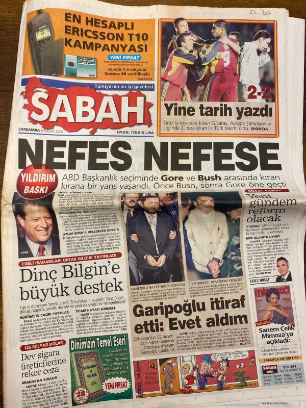 SABAH GAZETESİ DOĞUM GÜNÜ HEDİYESİ - 8 KASIM 2001 - TAM TAKIM 40 SAYFADIR -Gore-Bush-Yıldırım-Dinç Bilgin-Garipoğlu-Sümerbank-Hıncal Uluç-Hagi-Jardel-Lucescu-Mesut Yılmaz-Osim-Urs Meier-Scala-Bulak-Mustafa Denizli-Revivo-Lazeti-Orhan Ak-Kerem Alsırt-Hülya Koçyiğit-Cihan Ünal-Metin Akpınar-Kerem Alışık-Nurseli İdiz-Basak Köklükaya-Nilüfer Aydan-Fikret Hakan-İpek Tenolcay-Janiss-Yusuf Kenan-Derman Bey-Şükran Büfe-Sanem Çelik Nefes nefese-Dinç Bilgin’e büyük destek-Garipoğlu itiraf etti: Evet aldım-Yine tarih yazdı-Kâbustan rüyaya-Jardel gidiyor-Yılmaz el koydu-İşte 12. Adam-Seribaşı Monaco evine döndü-Lucescu: Gök başıma geçiyordu-Neden olmasın!-Fark için saldıracak-UEFA Kupası’na yelken açın-Scala: Yine kazanabiliriz-Bulak neşteri vurdu-Bu Fener başka-Taraftara bile sigorta-Nişan Yağmuru-Baykuşların Saltanatı-Derman Bey-Şükran Büfe AB çocuk dergisi-Sen dur Öcalan ben geldim-Ali Koç-Ahmet Öksüz-Necati Doğru Tarladan internete-Bilgi alışverişi sağlayan boru hattıyız-Nasıl işlem yapılacak? adlı eser, Kitap > Süreli Yayınlar > Gazeteler > Türkiye > Genel > Günlük kategorisinde İkinci El olarak satıştadır.