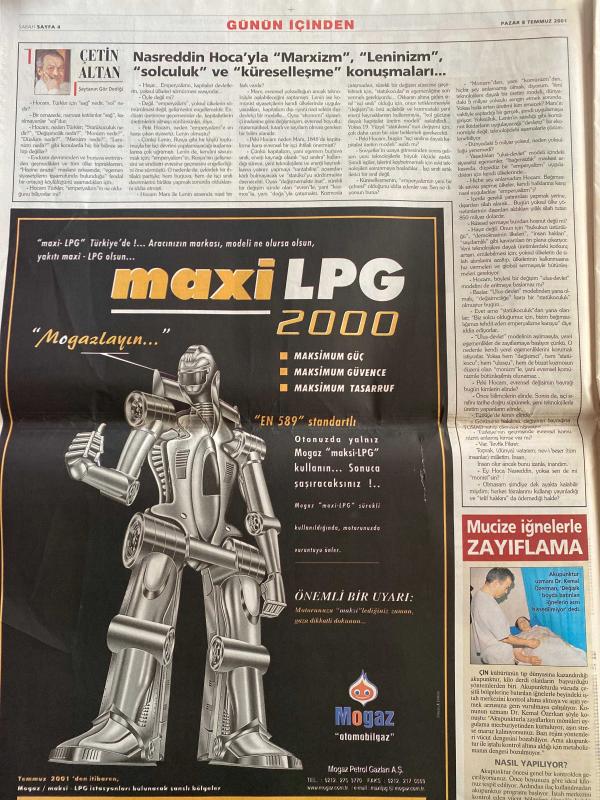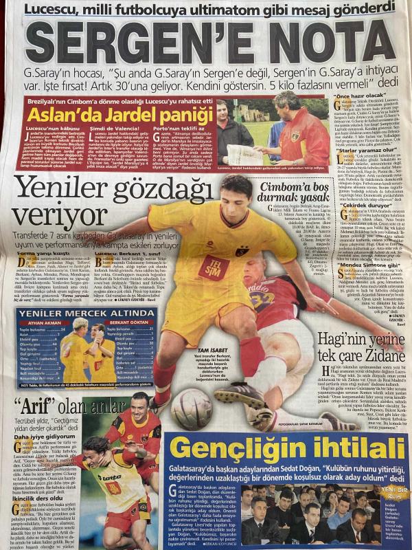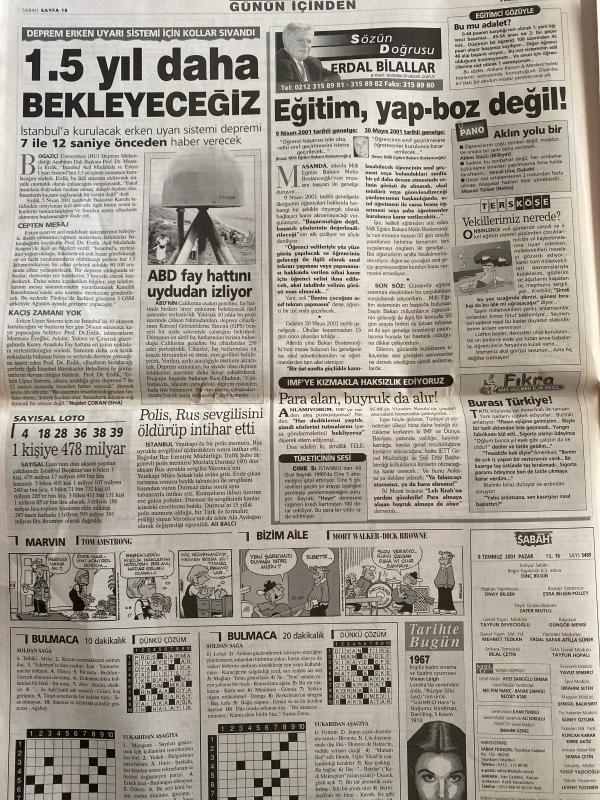 SABAH GAZETESİ DOĞUM GÜNÜ HEDİYESİ - 8 TEMMUZ 2001- TAM TAKIM 40 SAYFADIR -Köhler-Ecevit-Hülya Avşar-Kaya Çilingiroğlu-Lucescu-Sergen-Jardel-Hagi-Zidane-Sedat Doğan-Berkant Göktan-Arif Erdem-Hakan Bayraktar-Rapaic-Aziz Yıldırım-Denizli-Baev-Sezer-Bayındır-Bakan Ünlü-Morand-Trabzonspor-Hamza Turan Ayberk-Hülya Karabağlı-Güngör Mengü Futbol evinize geliyor-İşte IMF’nin son uyarısı-Ecevit’ten yaylım ateşi-Hülya hiç bu kadınla aldatılır mı-Sergen’e nota-Aslan’da Jardel paniği-Yeniler gözdağı veriyor-Arif olan anlar-Hagi’nin yerine tek care Zidane-Gençliğin ihtilali-İşi Cavcav bitirecek-Rapaic’in derdi para-Fener turp gibi-İlhan&Tümer resti-Filede harakiri-19 Mayıs kurtuldu-Basketçiler Almanya’ya-Polis müdürünü barda vurdular-Oksijen çadırında nara-Cesede naftalin-Erdal Bilallar-Necdet Çokan-ABD-Polis-Rus sevgilisi-Cem Uzan-Aylin Üstündağ 1.5 yıl daha bekleyeceğiz-ABD fay hattını uydudan izliyor-Eğitim yap-boz değil-Polis Rus sevgilisini öldürüp intihar etti-Bu mu adalet-IMF’ye kırmızı ka adlı eser, Kitap > Süreli Yayınlar > Gazeteler > Türkiye > Genel > Günlük kategorisinde İkinci El olarak satıştadır.