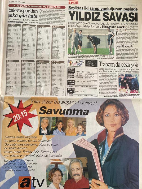 SABAH GAZETESİ DOĞUM GÜNÜ HEDİYESİ - 9 EKİM 2000 - TAM TAKIM 36 SAYFADIR -Kara çarşafa onur plaketi-Yavuz Donat-Süleyman Canan-Selahattin Duman-Hülya Avşar-Havel’den AB mesajları-Kör dalton gözcü olursa-2001 baharının cesur kadını Laura Biagiotti-Rauf Tamer-Fenerbahçeli Moshoeu-Dünya kulübü Fenerbahçe-Mustafa Denizli-Aslan’ın yedeği yok-Emre Belözoğlu riske girmiyor-Milli Takım’ın hocası Şenol Güneş’e göre Azerbaycan’ı yenmek şart-Ogün-Tayfur-Hasan Şaş-Erman Toroğlu-Cüneyt tanman-Ziya Şengül-Şanlı Sarıalioğlu-Beşiktaş iki şampiyonluğunun peşinde-Sergen Yalçın Beşiktaş maçında oynayacak-Scala-Antep Kombassan önünde galibiyeti son 5 dakikada kaçırdı-Savunma dizisi-Özlem Yıldız-Hakan Ural-Gökşen yılmazel-Abdullah Aksel-Fidyeci katile idam-Ünlü terörist Çakal Carlos kendini dine verdi-‘Otel ayısı’ Mustafa Taşar’ı zengin etti-Müşerref Canan-Tunceli artık özgür-Kamer genç-Mehmet Nalbantoğlu-Yer gök Ferrari-Michael Schumacher şampiyon-Hamza yerlikaya-Derya Büyükuncu-Şeref eroğlu-Harun Doğan- adlı eser, Kitap > Süreli Yayınlar > Gazeteler > Türkiye > Genel > Günlük kategorisinde İkinci El olarak satıştadır.