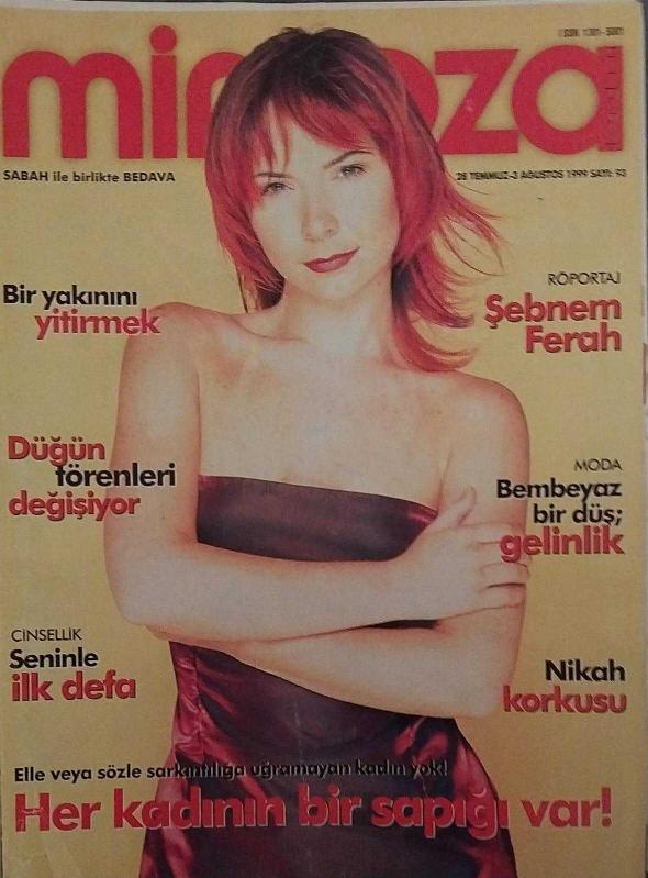 Kitap 1999 yılında yayınlanmıştır. 24 sayfadır. SABAH GAZETESİ MİMOZA KADIN DERGİSİ - 28 TEMMUZ-3 AĞUSTOS-1999 - SAYI:93-KAPAK -FOTOĞRAF-RÖPORTAJ-ŞEBNEM FERAH-BİR YAKININI YİTİRMEK-DÜĞÜN TÖRENLERİ DEĞİŞİYOR-CİNSELLİK-SENİNLE İLK DEFA-MODA-BEMBEYAZ BİR DÜŞ;GELİNLİK-NİKAH KORKUSU-ELLE VEYA SÖZLE SARKINTILIĞA UĞRAMAYAN KADIN YOK!-HER KADININ BİR SAPIĞI VAR!-ERKEK ŞİDDETİNİN YAŞI KÜÇÜLDÜ-VAY KALANA adlı eser Türkçe dilindedir.
