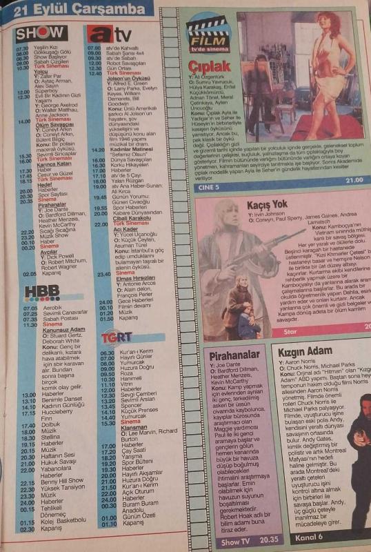 Kitap 1994 yılında yayınlanmıştır. 32 sayfadır. SABAH GAZETESİ-YENİ-TV GUİDE DERGİSİ-MODERN TV DERGİSİ-17 EYLÜL-23 EYLÜL-SAYI:87-1994-KAPAK-FOTOĞRAF-RÖPORTAJ-HAFTANIN FİLMLERİ-MERAKLI MELAHAT-GEENA DAVİS-HOLLYWOOD-GÖZDE TAN-BARIŞ MANÇO-NECLA YENER-WİTH HONORS-JOE PESCİ-BRENDEN FRASER-GAZANFER ÖZCAN-GÖNÜL ÜLKÜ-EROL EVGİN-SAKIP SABANCI-NERLİN İN BERLİN-TEHLİK İŞARETİ-KARA BÜYÜ-ALİ KIRCA-OSMAN YAĞMURDERELİ-TARKAN-TEKİN AKMANSOY-TÜRKAN ŞORAY-ŞAHMARAN-MEHMET BALKIZ-HALUK BİLGİNER-FATİH KISAPARMAK-ERİC BRAEDEN-SEZEN CUMHUR ÖNAL-MÜZİK YELPAZESİ-NURAY YILMAZ-LEMAN ÇIDAMLI-NURSELİ İDİZ-MÜŞFİK KENTER-ŞEVKET ALTUĞ-YONCA CEVHER-MAHMUT CEVHER-ZÜMRA AYCAN-ÇIPLAK-SUMRU YAVRUCUK adlı eser Türkçe dilindedir.