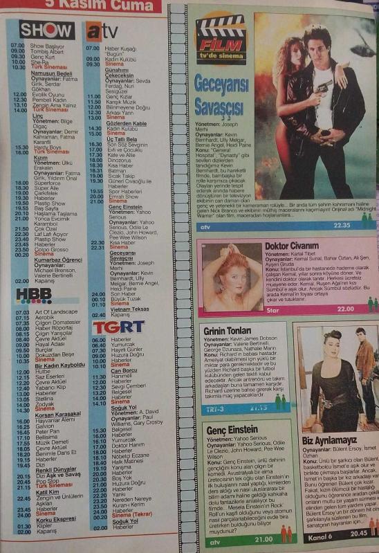 Kitap 1993 yılında yayınlanmıştır. 96 sayfadır. SABAH GAZETESİ-YENİ-TV GUİDE DERGİSİ-MODERN TV DERGİSİ-30 EKİM-5 KASIM-SAYI:41-1993-KAPAK-FOTOĞRAF-RÖPORTAJ-DAKIKASI DAKIKASINA TELEVIZYON PROGRAMLARI-HANGİ KANALDA HANGİ FİLMLER VAR-SİNEMA,MÜZİK ARKASI YARIN HABERLERI-EVCİLİK OYUNUNUN ÇINGIRAKLI ÇIĞIRTKANI-FÜSUN ÖNAL-SAVAŞ OTOBÜSÜ-DOKTOR CİVANIM-ANİ VURUŞ-SOKAKTAN GELEN KADIN-BANU ALKAN-GECEYARISI SAVAŞÇISI-DOKTOR CİVANIM-GRİNİN TONLARI-BİZ AYRILAMAYIZ-GENÇ EISTEIN adlı eser Türkçe dilindedir.