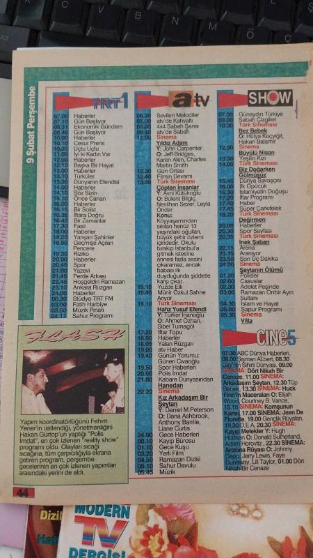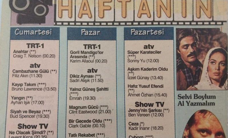 Kitap 1991 yılında yayınlanmıştır. 4 sayfadır. SABAH GAZETESİ-YENİ-TV GUİDE DERGİSİ-MODERN TV DERGİSİ-4ŞUBAT-10 ŞUBAT -1991-SAYI:107-KAPAK-FOTOĞRAF-RÖPORTAJ-HAFTANIN FİLMLERİ-SELVİ BOYLUM AL YAZMALIM-KADİR INANIR-TÜRKAN ŞORAY-SALVADOR-YUSUF İLE KENAN-JOY MORGAN-KİM BASİGNER-ROBERT CULP-STEPHEN MACHT adlı eser Türkçe dilindedir.