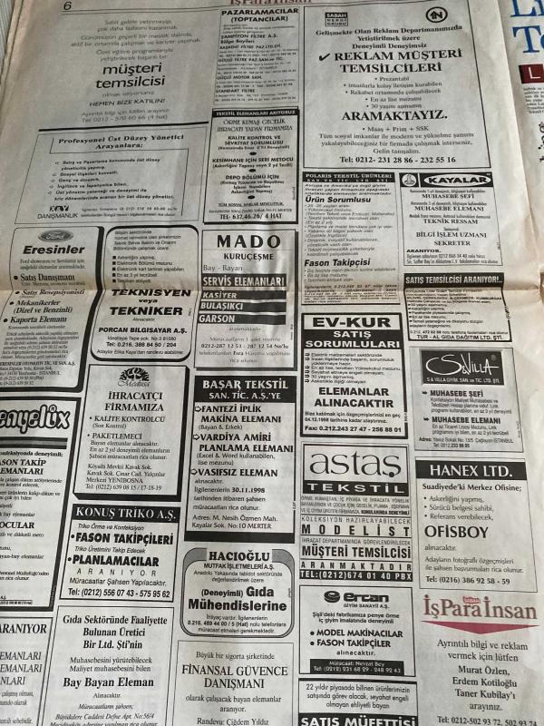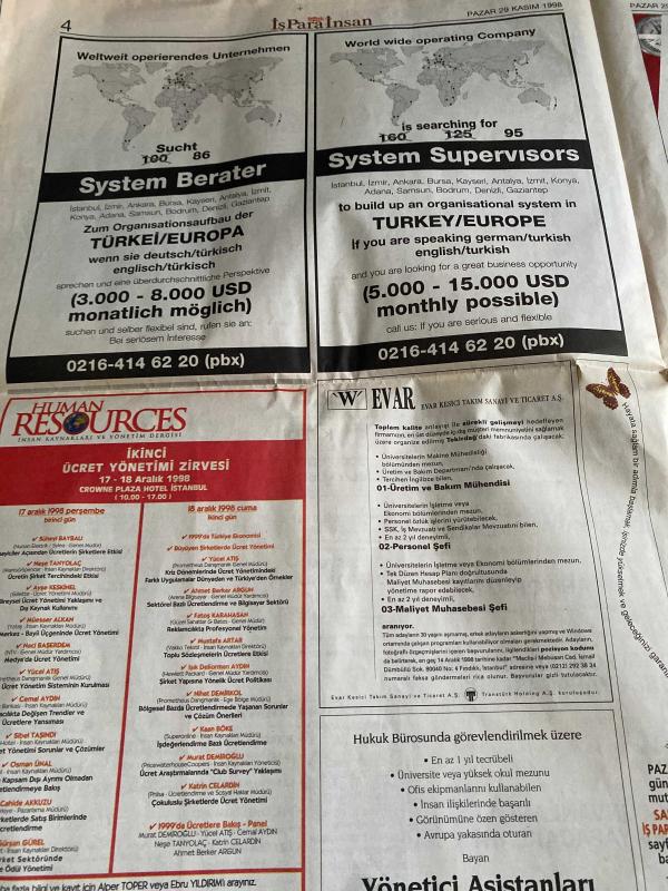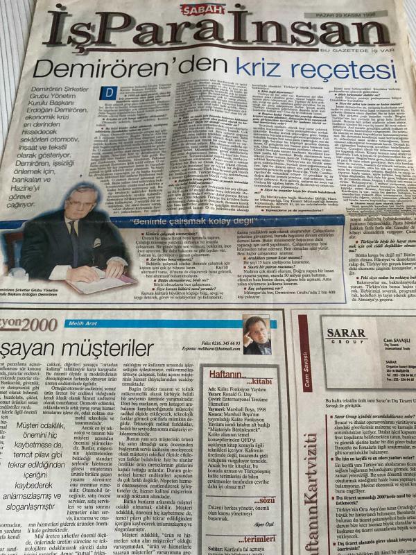 SABAH İŞ PARA İNSAN GAZETESİ DOĞUM GÜNÜ GAZETESİ - 29 KASIM 1998 - Erdoğan Demirören-Yeşim Ogurçlu-Canan Sayhan-Cem Savaşçı-Recep Aksoylu-Baybars Altuntaş-Osman Bilge-Celal Seçkin-Gökhan Türe-Kendi geleceğini yaratmak-Demirören’den kriz reçetesi-Pfizer’in 2001 hedefi en kaliteli işveren olmak-Tıbbi mümessilliğin önlenemeyen yükselişi-Linda Tekstil’den yeni bayilikler-Girişim projelerinizi bekliyoruz-Türkiye’nin ilk diplomalı franchising uzmanları-Ulusal Kalite Hareketi’nde özdeğerlendirmenin yeri-Sualtının büyüsü, Dinç Bilgin tarafından kaleme alınmıştır. SABAH İŞ PARA İNSAN GAZETESİ DOĞUM GÜNÜ GAZETESİ - 29 KASIM 1998 - Erdoğan Demirören-Yeşim Ogurçlu-Canan Sayhan-Cem Savaşçı-Recep Aksoylu-Baybars Altuntaş-Osman Bilge-Celal Seçkin-Gökhan Türe-Kendi geleceğini yaratmak-Demirören’den kriz reçetesi-Pfizer’in 2001 hedefi en kaliteli işveren olmak-Tıbbi mümessilliğin önlenemeyen yükselişi-Linda Tekstil’den yeni bayilikler-Girişim projelerinizi bekliyoruz-Türkiye’nin ilk diplomalı franchising uzmanları-Ulusal Kalite Hareketi’nde özdeğerlendirmenin yeri-Sualtının büyüsü adlı eser Türkçe dilindedir.