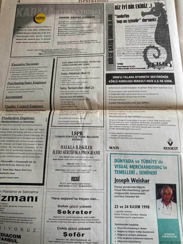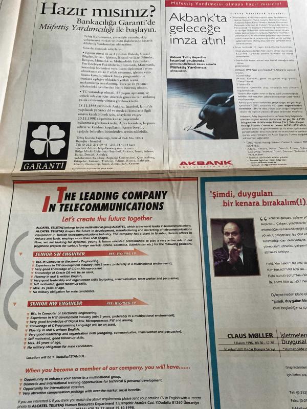 SABAH İŞ PARA İNSAN GAZETESİ DOĞUM GÜNÜ GAZETESİ - 4 EKİM 1998 - Don Tapscott-Melih Arat-Suat Baysan-Thomas Saaty-Feyyaz Berker-Nalan Tangülü-Hamid Aydın-Ayşe Pek Aryet-İlter Turan-Faruk Birtek-Deniz Gökçe-Beril Dedeoğlu-Abdullah Uygun-Alcatel’de HR devrimi-Finasbank’ın ikinci 10 yıl stratejisi-HP bilişim sektöründe liderliğe göz dikti-Etkin insan nasıl yaratılır-Alcatel Teletaş’ın imkanların dünyası-Sosyoloji danışmanı hizmetinizde-Halkla ilişkiler PR 3-Sürekli iyileştirme-IFSAK 40 yaşında-Ne olacak bu Türkiye’nin hali-Ulusal Kalite Hareketi ve Türkiye-PR’nin örgütü de var-Tekfen’in büyüme stratejisi-Mayamızda inşaat var-Türkiye için umutsuz değilim-Diyaloglar Marka ve Slogan-Stresle yaşamanın yolu-Dilinizin kilidini çözün-Mazda üretim için fırsat kolluyor-Halkla ilişkiler PR-Ulusal Kalite Hareketi, Dinç Bilgin tarafından kaleme alınmıştır. SABAH İŞ PARA İNSAN GAZETESİ DOĞUM GÜNÜ GAZETESİ - 4 EKİM 1998 - Don Tapscott-Melih Arat-Suat Baysan-Thomas Saaty-Feyyaz Berker-Nalan Tangülü-Hamid Aydın-Ayşe Pek Aryet-İlter Turan-Faruk Birtek-Deniz Gökçe-Beril Dedeoğlu-Abdullah Uygun-Alcatel’de HR devrimi-Finasbank’ın ikinci 10 yıl stratejisi-HP bilişim sektöründe liderliğe göz dikti-Etkin insan nasıl yaratılır-Alcatel Teletaş’ın imkanların dünyası-Sosyoloji danışmanı hizmetinizde-Halkla ilişkiler PR 3-Sürekli iyileştirme-IFSAK 40 yaşında-Ne olacak bu Türkiye’nin hali-Ulusal Kalite Hareketi ve Türkiye-PR’nin örgütü de var-Tekfen’in büyüme stratejisi-Mayamızda inşaat var-Türkiye için umutsuz değilim-Diyaloglar Marka ve Slogan-Stresle yaşamanın yolu-Dilinizin kilidini çözün-Mazda üretim için fırsat kolluyor-Halkla ilişkiler PR-Ulusal Kalite Hareketi adlı eser Türkçe dilindedir.