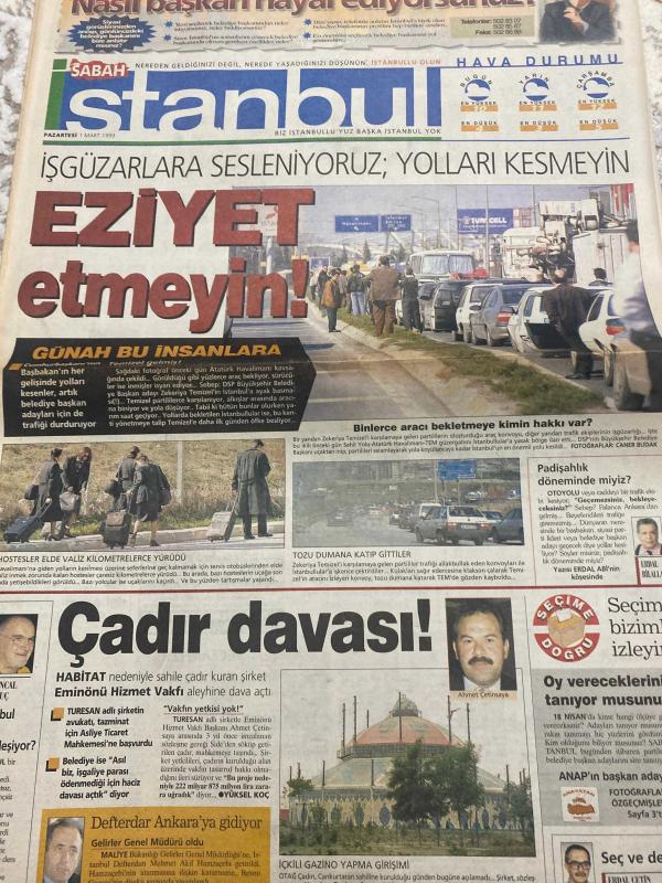 SABAH İSTANBUL GAZETESİ - 1 Mart 1999 -erdal Bilallar-filiz Güler-ramazan Yazgan-şenol baştakar-eczaneler-önemli telefonlar-İstanbulluların sesini dinleyin-Sarı Sayfalar-İstanbul’da kültür sanat-Güzellik Rehberi-hıncal Uluç-Ahmet Çetinkaya-maliye bakanlığı gelirler Genel müdürlüğü defterdar Mehmet Akif hamzaçebi-Erdal Çetin-ANAP’ın başkan adayları-Ali talip Özdemir-Yakacık-Yenibosna-Ozan dil-firatpen-kvs güvenlik sistemleri-pimapen-istanbul-sedat Özsoy-kerim erdem-ibrahim yıldız-ömer kazancı-ahmet Bahadırli- suat yazıcı-ferit pala-hasan akgün-bahtiyar uyanık-emin kul-sabah-ata demirer- üç baba hasan-ali poyrazoğlu-sen hiç ateşböceği gördün mü-cem yılmaz-kralice Elizabeth- bıçağın iki yüzü- yol-kesanli ali destani-haldun taner-peter pan-nice yıllara -popcorn- şu an mutfaktayım -komik çocuklar-yalcin menteş -eski çamlar bardak oldu- starduş-bravo-arzum-Şebnem Dinçgör adlı eser, Kitap > Süreli Yayınlar > Gazeteler > Türkiye > Genel > Günlük kategorisinde İkinci El olarak satıştadır.
