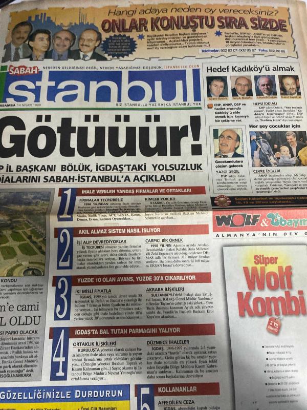 SABAH İSTANBUL GAZETESİ - 14 Nisan 1999 -erdal Bilallar-filiz Güler-ramazan Yazgan-şenol baştakar-eczaneler-önemli telefonlar-İstanbulluların sesini dinleyin-Sarı Sayfalar-İstanbul’da kültür sanat-Güzellik Rehberi-Zekeriya temizel-Adnan Polat-Selami Öztürk-Hamdi Doğan-Nusret Bayraktar-Selçuk Maruf lu-Erdal Çetin-Bektaş durmuş-engin akbaş-Gürbüz Çapan-Erol Kaya-bir Esenyurt masalı—vahit Genç-Hasan akgün-Baymak-wolf-lavinia-fehmi paşa konağı-sen hiç ateşböceği gördün mü-kusatma-elma dersem çık-cem yılmaz-gecmsin gölgesinde-sinema-cindy zayıflama merkezi-nilgun fakioglu-istanbul-asena-bizim ev-estelazer-son-bellaplast-interpen-pimapen-ulusal motorlu araçlar-sabah-firatpen adlı eser, Kitap > Süreli Yayınlar > Gazeteler > Türkiye > Genel > Günlük kategorisinde İkinci El olarak satıştadır.