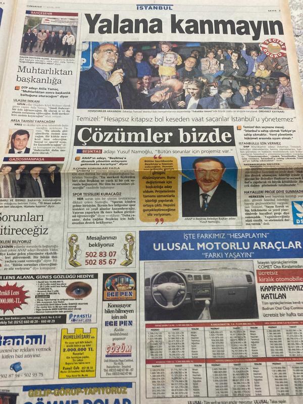SABAH İSTANBUL GAZETESİ - 17 Nisan 1999 -erdal Bilallar-filiz Güler-ramazan Yazgan-şenol baştakar-eczaneler-önemli telefonlar-İstanbulluların sesini dinleyin-Sarı Sayfalar-İstanbul’da kültür sanat-Güzellik Rehberi-Ali Müfit Gürtuna-Zekeriya temizel-Selami Öztürk-Adnan Polat-Hasan akgün-Atilla yamaç-Selçuk Maruf lu-Yusuf Namoğlu-Ali talip Özdemir-Mehmet Nuri Kuriş-Yusuf Namoğlu-Ufuk Uras-Ali Balcı-Adnan Polat-İslam Koray-Mehmet Oğuz-Tuğrul akoğlu-işte halkın tercihleri-Ahmet Vefik Alp-Yüksel Çengel-Nurettin Sarıbal-İTO başkanı Mehmet Yıldırım-Nejdet Çoban-Yusuf Demir-Mustafa Sarıgül-Abka flora evleri-outset-ümit mobilya-prestij-ece pen-ulusal motorlu araçlar-continent hipermarket, DİNÇ BİLGİN tarafından kaleme alınmıştır. SABAH İSTANBUL GAZETESİ - 17 Nisan 1999 -erdal Bilallar-filiz Güler-ramazan Yazgan-şenol baştakar-eczaneler-önemli telefonlar-İstanbulluların sesini dinleyin-Sarı Sayfalar-İstanbul’da kültür sanat-Güzellik Rehberi-Ali Müfit Gürtuna-Zekeriya temizel-Selami Öztürk-Adnan Polat-Hasan akgün-Atilla yamaç-Selçuk Maruf lu-Yusuf Namoğlu-Ali talip Özdemir-Mehmet Nuri Kuriş-Yusuf Namoğlu-Ufuk Uras-Ali Balcı-Adnan Polat-İslam Koray-Mehmet Oğuz-Tuğrul akoğlu-işte halkın tercihleri-Ahmet Vefik Alp-Yüksel Çengel-Nurettin Sarıbal-İTO başkanı Mehmet Yıldırım-Nejdet Çoban-Yusuf Demir-Mustafa Sarıgül-Abka flora evleri-outset-ümit mobilya-prestij-ece pen-ulusal motorlu araçlar-continent hipermarket adlı eser Türkçe dilindedir.