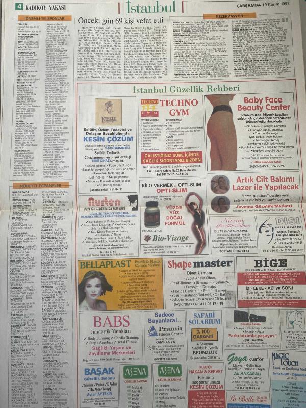 SABAH İSTANBUL GAZETESİ -19 Kasım 1997 -Erdal Bilallar-Ramazan yazgan-Filiz Güler-Şenol Bayraktar-Kenan erçetingöz-Kartal Belediye başkanı Mehmet Sekmen-aslıhan kanatlı-Türkan Şoray-Nilüfer-Sibel Can—Kemal Yıldırım—Consept line-Baymak-Sultanahmet tarihi halk Köftecisi Selim Usta-Özbağ pardesü-Palkpen-İzmirli kürk Sarayı-Sema Cıngıllıoğlu-Evant horizon-Tuncer Turan-Leyla Üstel--Sıdıka Atalay--Çevre Bakanı Imren Aykut-önemli telefonlar-önceki gün 69 kişi vefat etti-rezervasyon-nöbetçi eczaneler-İstanbul güzellik merkezi-Babs jimnastik yatakları-Asena güzellik salonu-Başk güzellik salonu-Goya kuaför-Bige epilasyon-Babys face-Techno gym-Bilgin akın-Banu üzülme-Yudum Yontan-Prestij moda kursu-Soytürk Ferfoje-Yıldız Kısa-Haldun dormen-Metin Serezli-Gülen Karaman—Şebnem Özinal-Gürkan Uygun-Alper düzen-bülent tavlı-metin madencilik-Servet Gürbüz, DİNÇ BİLGİN tarafından kaleme alınmıştır. SABAH İSTANBUL GAZETESİ -19 Kasım 1997 -Erdal Bilallar-Ramazan yazgan-Filiz Güler-Şenol Bayraktar-Kenan erçetingöz-Kartal Belediye başkanı Mehmet Sekmen-aslıhan kanatlı-Türkan Şoray-Nilüfer-Sibel Can—Kemal Yıldırım—Consept line-Baymak-Sultanahmet tarihi halk Köftecisi Selim Usta-Özbağ pardesü-Palkpen-İzmirli kürk Sarayı-Sema Cıngıllıoğlu-Evant horizon-Tuncer Turan-Leyla Üstel--Sıdıka Atalay--Çevre Bakanı Imren Aykut-önemli telefonlar-önceki gün 69 kişi vefat etti-rezervasyon-nöbetçi eczaneler-İstanbul güzellik merkezi-Babs jimnastik yatakları-Asena güzellik salonu-Başk güzellik salonu-Goya kuaför-Bige epilasyon-Babys face-Techno gym-Bilgin akın-Banu üzülme-Yudum Yontan-Prestij moda kursu-Soytürk Ferfoje-Yıldız Kısa-Haldun dormen-Metin Serezli-Gülen Karaman—Şebnem Özinal-Gürkan Uygun-Alper düzen-bülent tavlı-metin madencilik-Servet Gürbüz adlı eser Türkçe dilindedir.