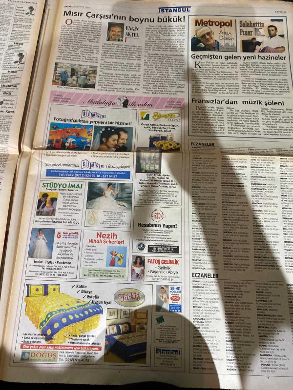 SABAH İSTANBUL GAZETESİ - 20 Haziran1999 -erdal Bilallar-filiz Güler-ramazan Yazgan-şenol baştakar-eczaneler-önemli telefonlar-İstanbulluların sesini dinleyin-Sarı Sayfalar-İstanbul’da kültür sanat-Güzellik Rehberi-Kadıköy hastanesi tren pansuman Gökhan-engin arslan-İETT Genel müdürü Raif yetim—Beşiktaş-Ümraniye-Bahçelievler-Erdal Çetin-Bülent Ergün-Mustafa Sarıgül-Engin aktel-Selahattin Pınar-Atilla Dorsan-Tayfun Karayazı-esnaf derneği başkanı Ömer Ünlü-Engin akbaş-Özel Üsküdar Amerikan lisesi -gencallar giyim mağazaları-Ayset gönlünce mobilya -afşar mobilya-stüdyo imaj-doğuş tekstil san ve tic.ltd.şti. -katre-Fatoş gelinlik -masko, DİNÇ BİLGİN tarafından kaleme alınmıştır. SABAH İSTANBUL GAZETESİ - 20 Haziran1999 -erdal Bilallar-filiz Güler-ramazan Yazgan-şenol baştakar-eczaneler-önemli telefonlar-İstanbulluların sesini dinleyin-Sarı Sayfalar-İstanbul’da kültür sanat-Güzellik Rehberi-Kadıköy hastanesi tren pansuman Gökhan-engin arslan-İETT Genel müdürü Raif yetim—Beşiktaş-Ümraniye-Bahçelievler-Erdal Çetin-Bülent Ergün-Mustafa Sarıgül-Engin aktel-Selahattin Pınar-Atilla Dorsan-Tayfun Karayazı-esnaf derneği başkanı Ömer Ünlü-Engin akbaş-Özel Üsküdar Amerikan lisesi -gencallar giyim mağazaları-Ayset gönlünce mobilya -afşar mobilya-stüdyo imaj-doğuş tekstil san ve tic.ltd.şti. -katre-Fatoş gelinlik -masko adlı eser Türkçe dilindedir.