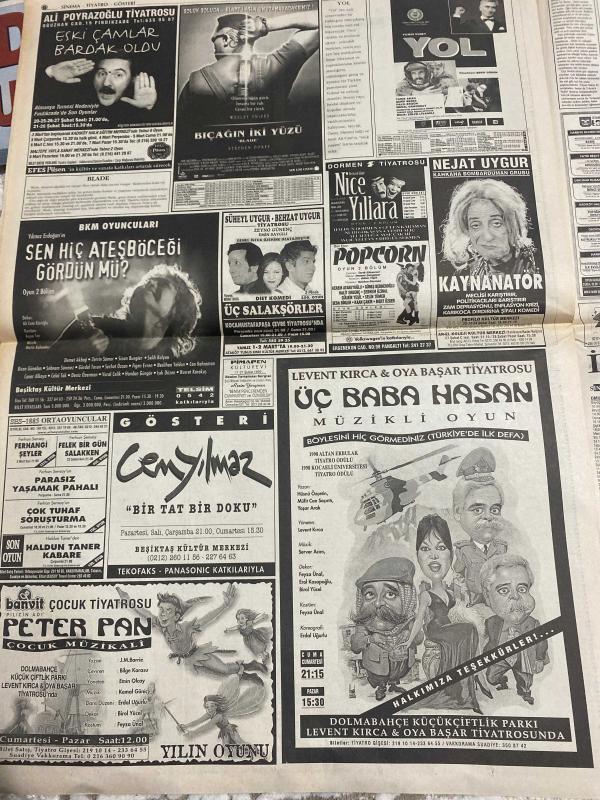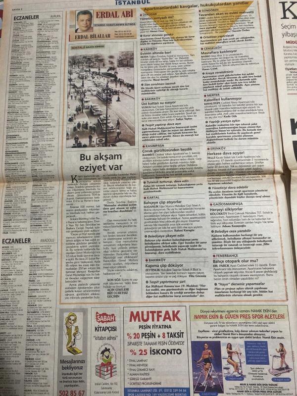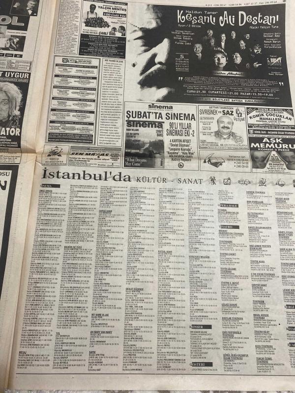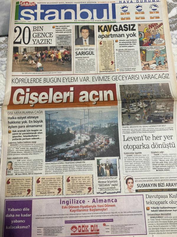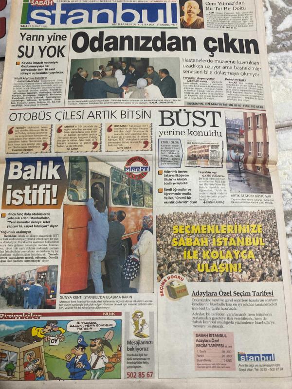 SABAH İSTANBUL GAZETESİ - 23 Şubat 1999 -erdal Bilallar-filiz Güler-ramazan Yazgan-şenol baştakar-eczaneler-önemli telefonlar-İstanbulluların sesini dinleyin-Sarı Sayfalar-İstanbul’da kültür sanat-Güzellik Rehberi-Ali Müfit Gürtuna-Mustafa Sarıgül-Nermin Özden-kavgasız apartman yok-Engin akbaş-Engin aktel-Mevlüt Karataş-Erenköy-Gaziosmanpaşa-Kartal-Fenerbahçe-Bakırköy-Çengelköy-Cem Yılmaz—Ali’ye atalık-Ali Çalışır-Yasemin Erdoğan-Satılık oto Orhan-Eski Çamlar bardak oldu-Sen hiç ateş böceği gördün mü-Yılmaz erdoğan-Demet akbağ-Zerrin sümer-Demet akbağ-Süheyl Uygur-Behzat Uygur-Bıçağın iki yüzü-Levent Kırca-Oya Başar-Üç Baba Hasan-Peter Pan-Yol-Tarık Akan-Cem yılmaz-bir tat bir doku-Nejat Uygur, DİNÇ BİLGİN tarafından kaleme alınmıştır. SABAH İSTANBUL GAZETESİ - 23 Şubat 1999 -erdal Bilallar-filiz Güler-ramazan Yazgan-şenol baştakar-eczaneler-önemli telefonlar-İstanbulluların sesini dinleyin-Sarı Sayfalar-İstanbul’da kültür sanat-Güzellik Rehberi-Ali Müfit Gürtuna-Mustafa Sarıgül-Nermin Özden-kavgasız apartman yok-Engin akbaş-Engin aktel-Mevlüt Karataş-Erenköy-Gaziosmanpaşa-Kartal-Fenerbahçe-Bakırköy-Çengelköy-Cem Yılmaz—Ali’ye atalık-Ali Çalışır-Yasemin Erdoğan-Satılık oto Orhan-Eski Çamlar bardak oldu-Sen hiç ateş böceği gördün mü-Yılmaz erdoğan-Demet akbağ-Zerrin sümer-Demet akbağ-Süheyl Uygur-Behzat Uygur-Bıçağın iki yüzü-Levent Kırca-Oya Başar-Üç Baba Hasan-Peter Pan-Yol-Tarık Akan-Cem yılmaz-bir tat bir doku-Nejat Uygur adlı eser Türkçe dilindedir.