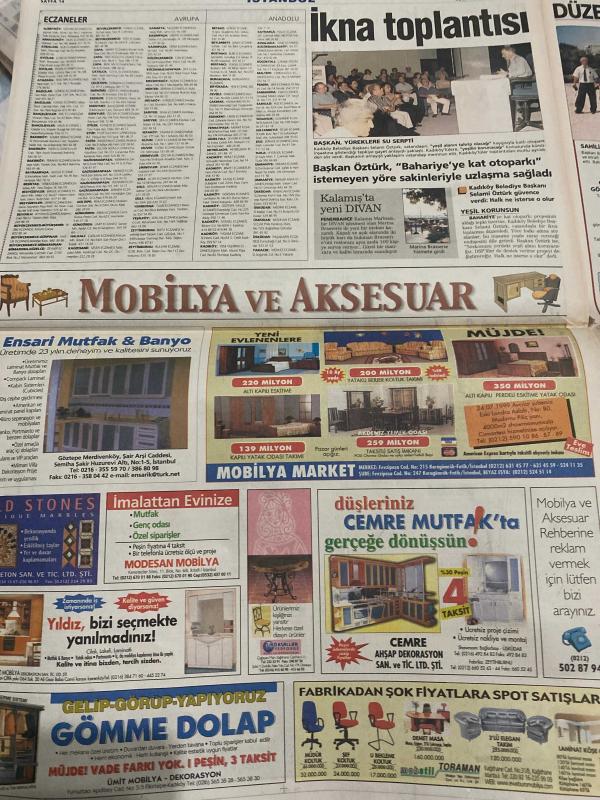 SABAH İSTANBUL GAZETESİ - 24 Temmuz 1999 -erdal Bilallar-filiz Güler-ramazan Yazgan-şenol baştakar-eczaneler-önemli telefonlar-İstanbulluların sesini dinleyin-Sarı Sayfalar-İstanbul’da kültür sanat-Güzellik Rehberi-ne diyorsunuz-sınırları belirsiz-Feshane Disneyland-pazarcılara öfke yağıyor-Saim barutçu-ertuğ al-Semt sakinleri-Ömer dönmez-behice Olgun-Veysel Polat-bu gölet 34 can yuttu-girişi var çıkış yok-Bahadırlı operasyonu-ay sonunda açılıyor-ilk icraati-Hüseyin gürcü-akpen-iskenderler mobilya-gömme dolap-mobilya market-old stones-modesan mobilya-köksallar-masko, DİNÇ BİLGİN tarafından kaleme alınmıştır. SABAH İSTANBUL GAZETESİ - 24 Temmuz 1999 -erdal Bilallar-filiz Güler-ramazan Yazgan-şenol baştakar-eczaneler-önemli telefonlar-İstanbulluların sesini dinleyin-Sarı Sayfalar-İstanbul’da kültür sanat-Güzellik Rehberi-ne diyorsunuz-sınırları belirsiz-Feshane Disneyland-pazarcılara öfke yağıyor-Saim barutçu-ertuğ al-Semt sakinleri-Ömer dönmez-behice Olgun-Veysel Polat-bu gölet 34 can yuttu-girişi var çıkış yok-Bahadırlı operasyonu-ay sonunda açılıyor-ilk icraati-Hüseyin gürcü-akpen-iskenderler mobilya-gömme dolap-mobilya market-old stones-modesan mobilya-köksallar-masko adlı eser Türkçe dilindedir.