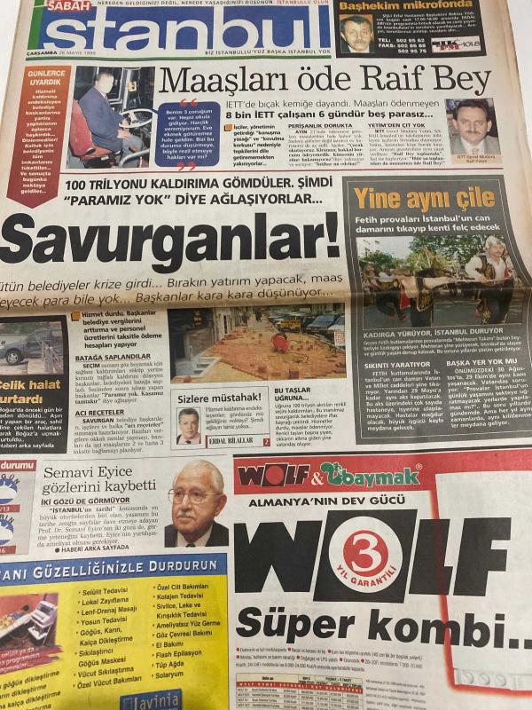 SABAH İSTANBUL GAZETESİ - 26 Mayıs 1999 -erdal Bilallar-filiz Güler-ramazan Yazgan-şenol baştakar-eczaneler-önemli telefonlar-İstanbulluların sesini dinleyin-Sarı Sayfalar-İstanbul’da kültür sanat-Güzellik Rehberi-Raif yetim-başhekim mikrofonda-savurganlar-yine aynı Çile-Fırat bey-sokak sakinleri-tevfik nagaş-Hüseyin Canbağ-köpek seviyoruz ama-semavi eyice gözlerini kaybetti-çarşıda yaprak kıpırdamıyor-Baymak kombi-lavinia-bilnet computer market-brd mimarlık-interpen-winsa-ozan dil yaz kursu-supersat-starduş- sen hiç ateşböceği gördün mü-salaklar sofrası-çıplak ten -gençlik festivali adlı eser, Kitap > Süreli Yayınlar > Gazeteler > Türkiye > Genel > Günlük kategorisinde İkinci El olarak satıştadır.