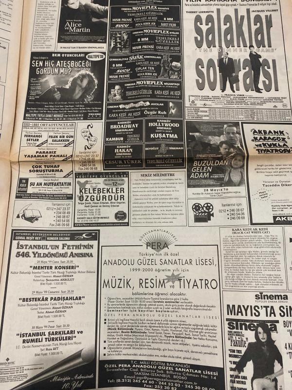 SABAH İSTANBUL GAZETESİ - 26 Mayıs 1999 -erdal Bilallar-filiz Güler-ramazan Yazgan-şenol baştakar-eczaneler-önemli telefonlar-İstanbulluların sesini dinleyin-Sarı Sayfalar-İstanbul’da kültür sanat-Güzellik Rehberi-Raif yetim-başhekim mikrofonda-savurganlar-yine aynı Çile-Fırat bey-sokak sakinleri-tevfik nagaş-Hüseyin Canbağ-köpek seviyoruz ama-semavi eyice gözlerini kaybetti-çarşıda yaprak kıpırdamıyor-Baymak kombi-lavinia-bilnet computer market-brd mimarlık-interpen-winsa-ozan dil yaz kursu-supersat-starduş- sen hiç ateşböceği gördün mü-salaklar sofrası-çıplak ten -gençlik festivali, DİNÇ BİLGİN tarafından kaleme alınmıştır. SABAH İSTANBUL GAZETESİ - 26 Mayıs 1999 -erdal Bilallar-filiz Güler-ramazan Yazgan-şenol baştakar-eczaneler-önemli telefonlar-İstanbulluların sesini dinleyin-Sarı Sayfalar-İstanbul’da kültür sanat-Güzellik Rehberi-Raif yetim-başhekim mikrofonda-savurganlar-yine aynı Çile-Fırat bey-sokak sakinleri-tevfik nagaş-Hüseyin Canbağ-köpek seviyoruz ama-semavi eyice gözlerini kaybetti-çarşıda yaprak kıpırdamıyor-Baymak kombi-lavinia-bilnet computer market-brd mimarlık-interpen-winsa-ozan dil yaz kursu-supersat-starduş- sen hiç ateşböceği gördün mü-salaklar sofrası-çıplak ten -gençlik festivali adlı eser Türkçe dilindedir.
