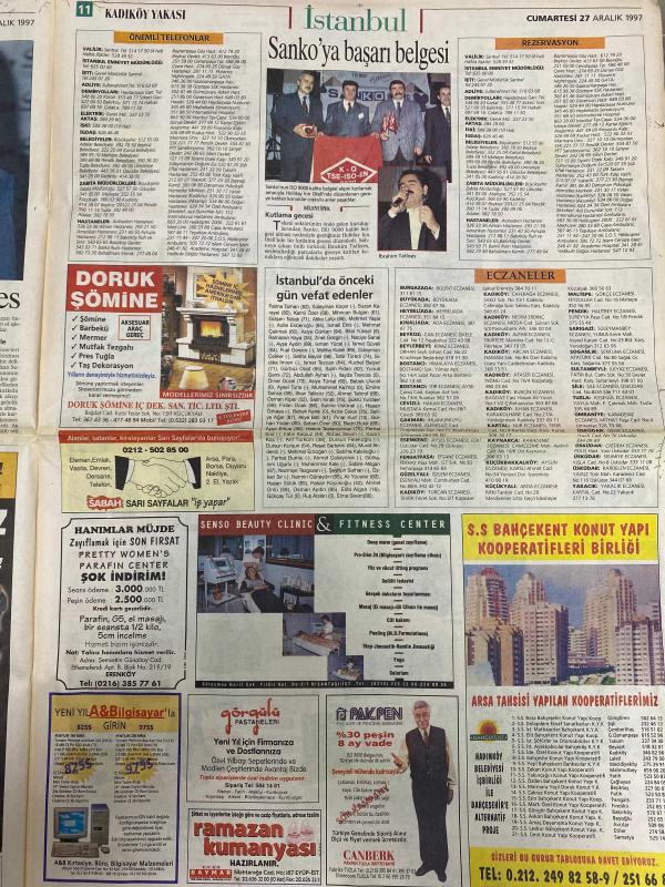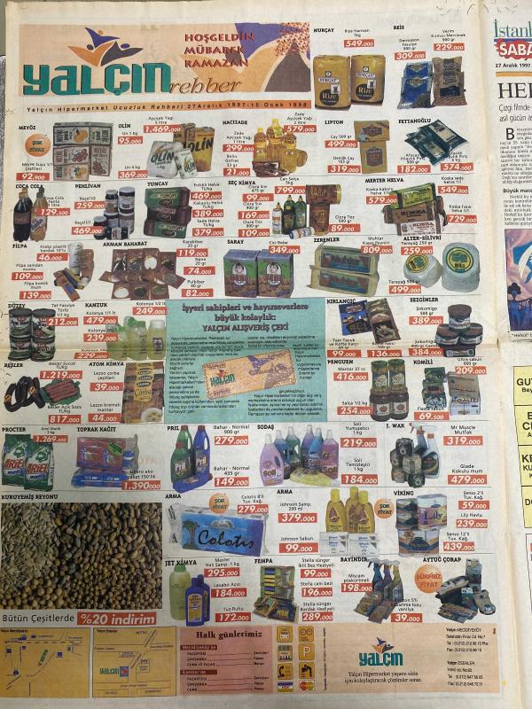 SABAH İSTANBUL GAZETESİ -27 Aralık 1997 -Alışveriş rehberi-karikatürist İbrahim sarı-Filiz Güler--Anaokulunda Sibel Can’lı yılbaşı kutlaması-Şebnem demir-Erdal Bilallar-nabi Çiçekçilik-İstanbul otomobil kulübü-Türkan Sunar-Fatih Kıztaşı-Coşkun kürk-önemli telefonlar-doruk şömine-Sanko‘ya başarı belgesi-Bülent İpek-İbrahim Tatlıses-Bahçekent konut Yapı kooperatifler birliği-İstanbul’da önceki gün vefat edenler-doruk şömine-Yalçın rehber market hoşgeldin mübarek Ramazan-sinema-007 James bond’un 18. macerası-Herkül-Özkan binol-Yılbaşı kutlamaları-Pimapen-Celko çanta-Mutlu otomotiv-Stillo ayakkabı-Maltepe’de şenlik var-candan Erçetin müzikal AKM’de-Cemal Reşit rey Senfoni orkestrası ve opera korosu-Sönmez mobilya’dan ramazan hediyesi-Türkiye denizcilik işletme Genel müdürlüğü otel oluyor-Esmer mobilya-sanatçı Neco-Anlat Şehrazat müzikali- Modisan adlı eser, Kitap > Süreli Yayınlar > Gazeteler > Türkiye > Genel > Günlük kategorisinde İkinci El olarak satıştadır.