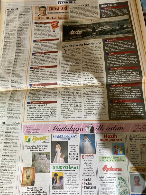 SABAH İSTANBUL GAZETESİ - 27 Haziran1999 -erdal Bilallar-filiz Güler-ramazan Yazgan-şenol baştakar-eczaneler-önemli telefonlar-İstanbulluların sesini dinleyin-Sarı Sayfalar-İstanbul’da kültür sanat-Güzellik Rehberi-Mustafa Sarıgül-Çevre gönüllüsü-Fatih Belediyesi-Kemal Özkan-zeynel kılıç-Erdal Çetin-Ertuğrul kale-Azade başağa-güngören İshak Dinçer-İkiler tekstil-acer bilgisayar -vatan bilgisayar-nezih nikah şekerleri-libas modaevi- stüdyo imaj-nur gelinlik-Gamze gizay gelinlik -erkam banyo mutfak -masko-doğuş tekstil, DİNÇ BİLGİN tarafından kaleme alınmıştır. SABAH İSTANBUL GAZETESİ - 27 Haziran1999 -erdal Bilallar-filiz Güler-ramazan Yazgan-şenol baştakar-eczaneler-önemli telefonlar-İstanbulluların sesini dinleyin-Sarı Sayfalar-İstanbul’da kültür sanat-Güzellik Rehberi-Mustafa Sarıgül-Çevre gönüllüsü-Fatih Belediyesi-Kemal Özkan-zeynel kılıç-Erdal Çetin-Ertuğrul kale-Azade başağa-güngören İshak Dinçer-İkiler tekstil-acer bilgisayar -vatan bilgisayar-nezih nikah şekerleri-libas modaevi- stüdyo imaj-nur gelinlik-Gamze gizay gelinlik -erkam banyo mutfak -masko-doğuş tekstil adlı eser Türkçe dilindedir.