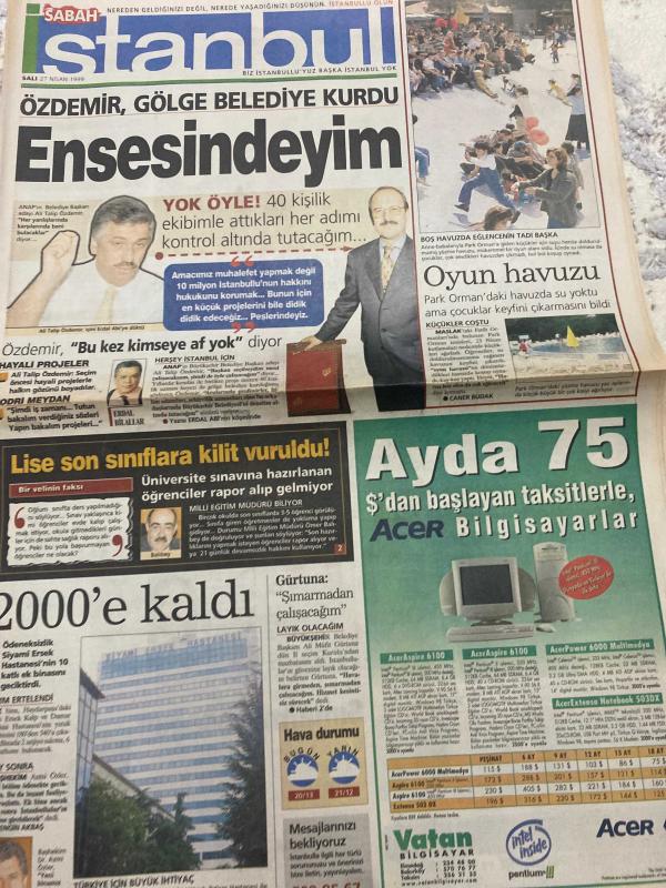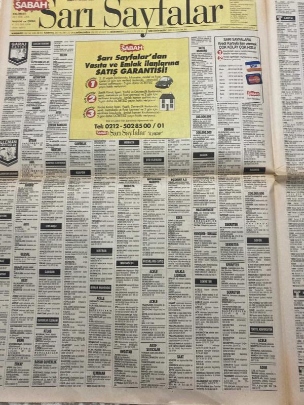 SABAH İSTANBUL GAZETESİ - 27 Nisan 1999 -erdal Bilallar-filiz Güler-ramazan Yazgan-şenol baştakar-eczaneler-önemli telefonlar-İstanbulluların sesini dinleyin-Sarı Sayfalar-İstanbul’da kültür sanat-Güzellik Rehberi-Ali talip Özdemir-Ömer Ballıbey-engin akbaş-Siyami Ersek hastanesi-azmi Özler-erdal Çetin-Ali Müfit Gürtuna-Selami Öztürk-Deniz türkali-atıf Yılmaz-Serap Aksoy-Atilla Dorsay-Yahya karakaya-Coşkun Özden-Hasan akgün-Ahmet Bahadırlı-İhsan Çayıroğlu-Murat Yiğit-Sevgi kent-partilerine fark attılar-Vatan bilgisayar-acer-emim otomotiv- bahçelievler-sariyer-beyoğlu-pendik-peter pan- özgür ruh-sinema - nice yıllar-sen hiç ateşböceği gördün mü-hayat güzeldir-tehlikeli güzellik-akbank- şenmakas-umut hastanesi-winsa-ersan asansör- hünkar-ozan dil adlı eser, Kitap > Süreli Yayınlar > Gazeteler > Türkiye > Genel > Günlük kategorisinde İkinci El olarak satıştadır.