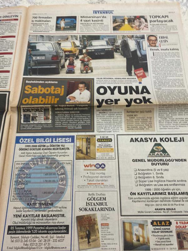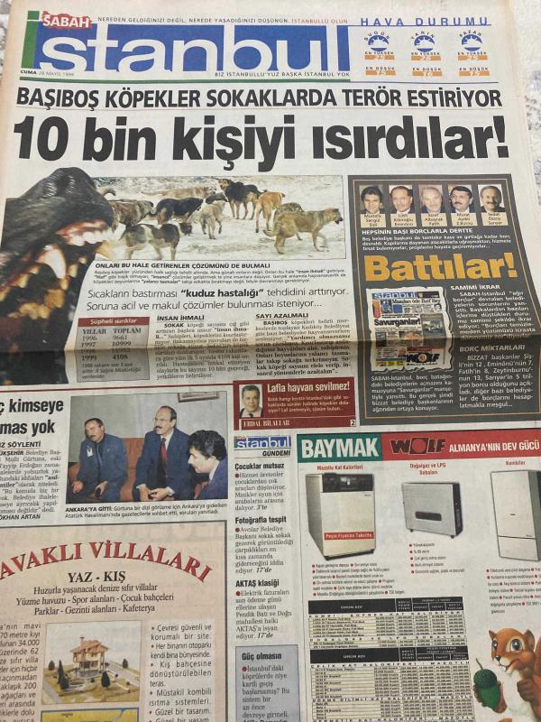 SABAH İSTANBUL GAZETESİ - 28 Mayıs 1999 -Başıboş köpekler sokaklarda terör estiriyor,bir yılda 10 bin insanı ısırdılar haberi-erdal Bilallar-filiz Güler-ramazan Yazgan-şenol baştakar-eczaneler-önemli telefonlar-İstanbulluların sesini dinleyin-Sarı Sayfalar-İstanbul’da kültür sanat-Güzellik Rehberi-Mustafa Sarıgül-Lütfi Kibaroğlu-eşref Albayrak-Murat Aydın-Sedat Özsoy-Gökhan artan-Recep Tayyip Erdoğan-Ali Müfit Gürtuna-doktor tuğrul Berkel-Erdal Çetin-Coşkun Özden-Emirgan-Bahçelievler-Şişli-Muammer bövelek-Atilla Dorsay-Ali Kırca’nın gözleri-Ünal ekmekçi-yıldız ekmekçi-Murat Demirel-Rafya Demirel-Mustafa değirmenci-Salim yavaşoğlu-Mutafyan-Baymak kombi-günal kavaklı villaları-akasya koleji-winsa-özel bilgi lisesi-fetih mobilyacılık çarşısı-sen hiç ateşböceği gördün mü- kelebekler özgürdür-capitol Türkiye'nin en büyük sinema kompleksi-erkom-bilmet computer center-orbita göz sağlığı-starduş, DİNÇ BİLGİN tarafından kaleme alınmıştır. SABAH İSTANBUL GAZETESİ - 28 Mayıs 1999 -Başıboş köpekler sokaklarda terör estiriyor,bir yılda 10 bin insanı ısırdılar haberi-erdal Bilallar-filiz Güler-ramazan Yazgan-şenol baştakar-eczaneler-önemli telefonlar-İstanbulluların sesini dinleyin-Sarı Sayfalar-İstanbul’da kültür sanat-Güzellik Rehberi-Mustafa Sarıgül-Lütfi Kibaroğlu-eşref Albayrak-Murat Aydın-Sedat Özsoy-Gökhan artan-Recep Tayyip Erdoğan-Ali Müfit Gürtuna-doktor tuğrul Berkel-Erdal Çetin-Coşkun Özden-Emirgan-Bahçelievler-Şişli-Muammer bövelek-Atilla Dorsay-Ali Kırca’nın gözleri-Ünal ekmekçi-yıldız ekmekçi-Murat Demirel-Rafya Demirel-Mustafa değirmenci-Salim yavaşoğlu-Mutafyan-Baymak kombi-günal kavaklı villaları-akasya koleji-winsa-özel bilgi lisesi-fetih mobilyacılık çarşısı-sen hiç ateşböceği gördün mü- kelebekler özgürdür-capitol Türkiye'nin en büyük sinema kompleksi-erkom-bilmet computer center-orbita göz sağlığı-starduş adlı eser Türkçe dilindedir.