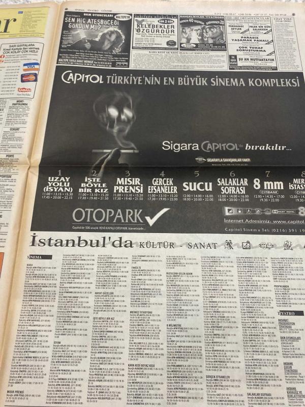 SABAH İSTANBUL GAZETESİ - 28 Mayıs 1999 -Başıboş köpekler sokaklarda terör estiriyor,bir yılda 10 bin insanı ısırdılar haberi-erdal Bilallar-filiz Güler-ramazan Yazgan-şenol baştakar-eczaneler-önemli telefonlar-İstanbulluların sesini dinleyin-Sarı Sayfalar-İstanbul’da kültür sanat-Güzellik Rehberi-Mustafa Sarıgül-Lütfi Kibaroğlu-eşref Albayrak-Murat Aydın-Sedat Özsoy-Gökhan artan-Recep Tayyip Erdoğan-Ali Müfit Gürtuna-doktor tuğrul Berkel-Erdal Çetin-Coşkun Özden-Emirgan-Bahçelievler-Şişli-Muammer bövelek-Atilla Dorsay-Ali Kırca’nın gözleri-Ünal ekmekçi-yıldız ekmekçi-Murat Demirel-Rafya Demirel-Mustafa değirmenci-Salim yavaşoğlu-Mutafyan-Baymak kombi-günal kavaklı villaları-akasya koleji-winsa-özel bilgi lisesi-fetih mobilyacılık çarşısı-sen hiç ateşböceği gördün mü- kelebekler özgürdür-capitol Türkiye'nin en büyük sinema kompleksi-erkom-bilmet computer center-orbita göz sağlığı-starduş adlı eser, Kitap > Süreli Yayınlar > Gazeteler > Türkiye > Genel > Günlük kategorisinde İkinci El olarak satıştadır.