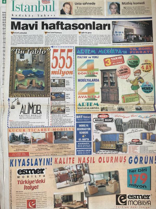 SABAH İSTANBUL GAZETESİ -29 Kasım 1997 -Erdal Bilallar-Ramazan yazgan-Filiz Güler-Şenol Bayraktar-birsel Sancar-Seyran-bebekler ölüyor-Bülent İpek-prestige moda kursu-Fıratpen-Çağın mutfak ve banyo-Sultanahmet tarihi halk Köftecisi Salim usta-Bülent İpek-Recep Tayyip Erdoğan-Hüseyin bürge-Fırat Aykut-Kenan erçetingöz-Site akheon-Nöbetçi eczaneler-önemli telefonlar--rezervasyon-Pimapen-Ankara mobilya-Derishow-Galleria-Peteks alışveriş merkezi-Muteber dekor-Menderes Koç-Faruk Mehmet oğlu-Abdunnur Işılcan-Kadir Ayyıldız-Metin Geçgel-afif acar-feyzullah acar-Bahçekent konut Yapı ve kooperatifler birliği-Condor Arpets-Önceki gün 74 kişi vefat etti-saat 9:05 oyunu-Haluk kurdoğlu-Nezihe araz-Neil Simon-Çıplak ayak oyunu-esmer mobilya-adnan ahşap-Kucur ticaret mobilya adlı eser, Kitap > Süreli Yayınlar > Gazeteler > Türkiye > Genel > Günlük kategorisinde İkinci El olarak satıştadır.
