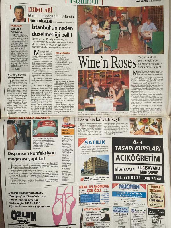 SABAH İSTANBUL GAZETESİ -3 Kasım 1997 -Erdal Bilallar-Ramazan yazgan-Filiz Güler-Şenol Bayraktar-Vakko-Levis-Stones-Oxxo-Kip-Collezione-Kiğılı-Benetton-İlker güler-Kartal belediye başkanı Mehmet sekmen-Disan Amerikan kapı-Yelda kohen-Wine’n Roses-Özlem odabaşı bale kursu-Sağlık bakanı Halil İbrahim Özsoy-Kızılay genel başkanı Kemal demir-Pakpen-Zirve dağ sporları-Dancar-Gülden anne eğitim kurumları-Belgin Akın-Divanda kahvaltı-Önemli telefonlar-Hüseyin Şen-Ali Mazak-Emine Kuzu-Birsel Sancar-Florence Nightingale-Özel Şişli eğitim merkezi-Ümraniye hizmet vakfı yardım market-hamam-İstanbul sinemaları-istasyon sanat merkezi-kültür etkinlikleri-hız tuzağı iki-Kakara kikiri--Sezen Aksu--Uğur Yücel-bu filmi görmüştüm-Zeki Müren için bir demet yasemen-nöbetçi eczaneler-Ankara mobilya-Ege Penn-Ayşegül Çocuk yuvası ve kulübü-güçlü fen Dershaneleri-Ertan Ünal--Orkapsan-Jerusalem-Şebnem Özinal-Metin serezli-Gürkan uygun-Gümler karaman-Maria callas-Nurten Ertul-Evin dekoratif eşya-Starduş-Akçasan, DİNÇ BİLGİN tarafından kaleme alınmıştır. SABAH İSTANBUL GAZETESİ -3 Kasım 1997 -Erdal Bilallar-Ramazan yazgan-Filiz Güler-Şenol Bayraktar-Vakko-Levis-Stones-Oxxo-Kip-Collezione-Kiğılı-Benetton-İlker güler-Kartal belediye başkanı Mehmet sekmen-Disan Amerikan kapı-Yelda kohen-Wine’n Roses-Özlem odabaşı bale kursu-Sağlık bakanı Halil İbrahim Özsoy-Kızılay genel başkanı Kemal demir-Pakpen-Zirve dağ sporları-Dancar-Gülden anne eğitim kurumları-Belgin Akın-Divanda kahvaltı-Önemli telefonlar-Hüseyin Şen-Ali Mazak-Emine Kuzu-Birsel Sancar-Florence Nightingale-Özel Şişli eğitim merkezi-Ümraniye hizmet vakfı yardım market-hamam-İstanbul sinemaları-istasyon sanat merkezi-kültür etkinlikleri-hız tuzağı iki-Kakara kikiri--Sezen Aksu--Uğur Yücel-bu filmi görmüştüm-Zeki Müren için bir demet yasemen-nöbetçi eczaneler-Ankara mobilya-Ege Penn-Ayşegül Çocuk yuvası ve kulübü-güçlü fen Dershaneleri-Ertan Ünal--Orkapsan-Jerusalem-Şebnem Özinal-Metin serezli-Gürkan uygun-Gümler karaman-Maria callas-Nurten Ertul-Evin dekoratif eşya-Starduş-Akçasan adlı eser Türkçe dilindedir.