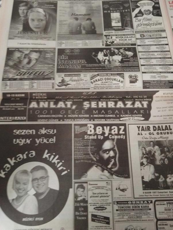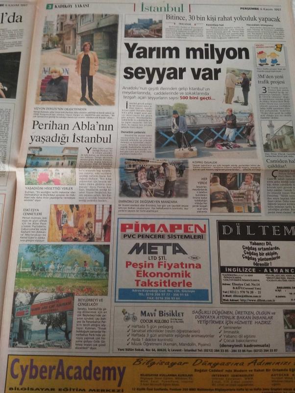 SABAH İSTANBUL GAZETESİ -6 Kasım 1997 -Erdal Bilallar-Ramazan yazgan-Filiz Güler-Şenol Bayraktar-Raif Yetim-Şık Fm-Coursel-Sultan Uçar- İl Milli Eğitim Müdürü Ömer Balibey- Veli Göçer Arsa Ofisi- Belediye Başkanı Arif calvan- istanbulluların en çok kullandığı cümleler-Academy Dog Kennels köpek eğitim ve Bakım Merkezi- Muhsin Ertuğrul- Refik erduran- Erol Keskin- Feyza Zeybek- Canan göknil- Selçuk Borak -Berrin Akdeniz -Mehmet bulduk- Süeda Can -Mehmet çerezcioğlu -rozet hubeş- Müge Akyamaç- özel Şişli Eğitim Merkezi Denizcilik ve gemi adamları yetiştirme kursu-ece pen-optik grup- Gökkuşağı Çocuk Evi- İstanbul Sağlık rehberi-ayderm- önemli telefonlar- binario- Perran kutman-perihan abla-şehnaz tango-atlas pasajı-cyberacademy bilgisayar Eğitim Merkezi- Bedrettin Dalan- Hacı Ömer Efendi Camii- Engin Aytaş- Pimapen PVC pencere sistemleri-diltem-mavi bisiklet- jerusalem-hız tuzağı-hamam-bir İstanbul masalı-alaaddin-şakacı çocuklar-büyük kulaklık küçük ayı-masumiyet- Şehir Tiyatroları-Kakara, DİNÇ BİLGİN tarafından kaleme alınmıştır. SABAH İSTANBUL GAZETESİ -6 Kasım 1997 -Erdal Bilallar-Ramazan yazgan-Filiz Güler-Şenol Bayraktar-Raif Yetim-Şık Fm-Coursel-Sultan Uçar- İl Milli Eğitim Müdürü Ömer Balibey- Veli Göçer Arsa Ofisi- Belediye Başkanı Arif calvan- istanbulluların en çok kullandığı cümleler-Academy Dog Kennels köpek eğitim ve Bakım Merkezi- Muhsin Ertuğrul- Refik erduran- Erol Keskin- Feyza Zeybek- Canan göknil- Selçuk Borak -Berrin Akdeniz -Mehmet bulduk- Süeda Can -Mehmet çerezcioğlu -rozet hubeş- Müge Akyamaç- özel Şişli Eğitim Merkezi Denizcilik ve gemi adamları yetiştirme kursu-ece pen-optik grup- Gökkuşağı Çocuk Evi- İstanbul Sağlık rehberi-ayderm- önemli telefonlar- binario- Perran kutman-perihan abla-şehnaz tango-atlas pasajı-cyberacademy bilgisayar Eğitim Merkezi- Bedrettin Dalan- Hacı Ömer Efendi Camii- Engin Aytaş- Pimapen PVC pencere sistemleri-diltem-mavi bisiklet- jerusalem-hız tuzağı-hamam-bir İstanbul masalı-alaaddin-şakacı çocuklar-büyük kulaklık küçük ayı-masumiyet- Şehir Tiyatroları-Kakara adlı eser Türkçe dilindedir.
