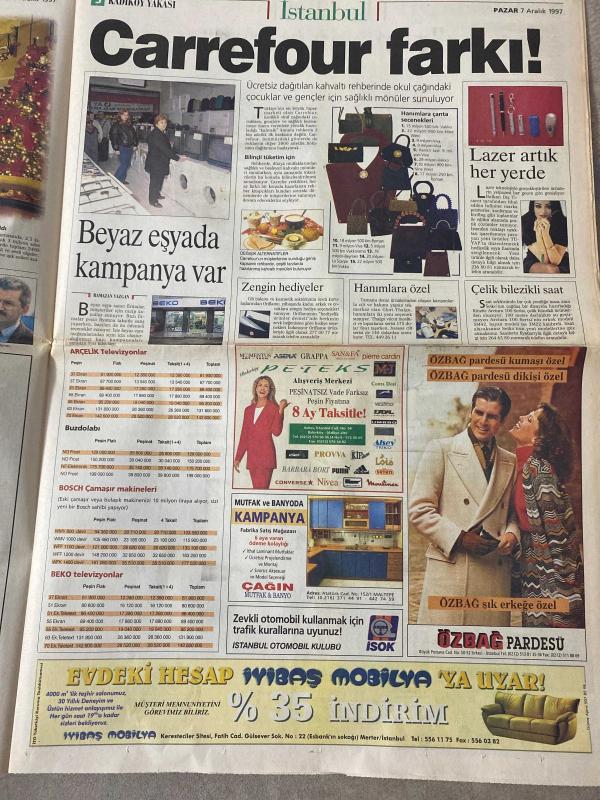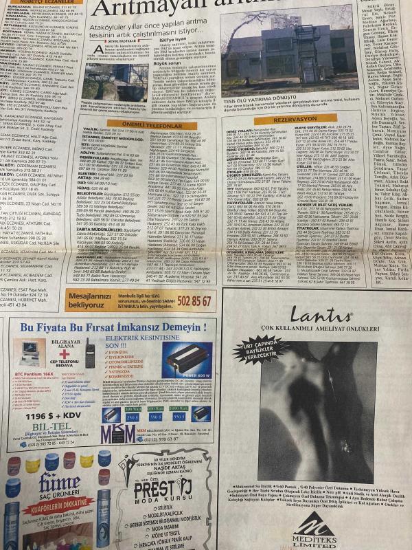SABAH İSTANBUL GAZETESİ -7 Aralık 1997 -Erdal Bilallar-Ramazan yazgan-Filiz Güler-Şenol Bayraktar-Kenan Evren Lisesi öğrencileri, Lösemi olan arkadaşlarını kurtarmak için şimdiye kadar görülmemiş bir kampanya başlattı-her şey Kadir için-Kemal Yıldırım-mavi bisiklet Çocuk kulübü-Pamukspor merkezi-kiralık Noel baba—nebahat Koç-mimar muammer bayır-Sevgi Yazıcı-Rugstore-Carousel ışıl ışıl-Eyüboğlu Lisesi-Binali Yıldırım-Euro klinik laboratuvarı-Ondor arpets-Carrefour farkı-Özbağ pardesü-rüstem eyüboğlu-İstanbul otomobil kulübü-nöbetçi eczaneler-önemli telefonlar rezervasyon-prestige moda kursu-Bahçekent kooperatifler-Artem mobilya-james bond-Özkan binol-çelik-cihan Ünal-Berna Laçim-Cem davran-Esra Akkaya--İlker güler-raydolap-Modisan-Stanley adlı eser, Kitap > Süreli Yayınlar > Gazeteler > Türkiye > Genel > Günlük kategorisinde İkinci El olarak satıştadır.