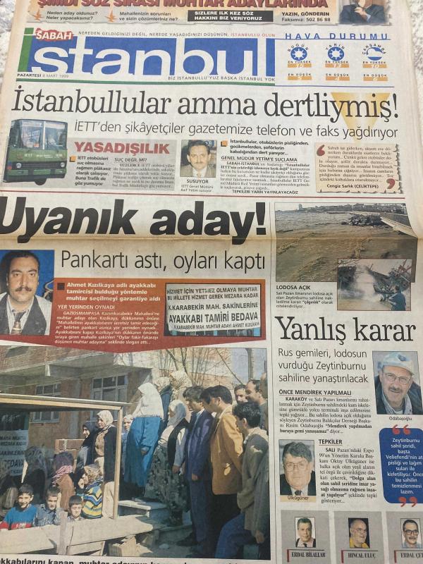 SABAH İSTANBUL GAZETESİ - 8 Mart 1999 -erdal Bilallar-filiz Güler-ramazan Yazgan-şenol baştakar-eczaneler-önemli telefonlar-İstanbulluların sesini dinleyin-Sarı Sayfalar-İstanbul’da kültür sanat-Güzellik Rehberi-Zeytinburnu balıkçılar derneği başkanı Rasim odabaşoğlu-Oktay Ülkü Güner-hıncal Uluç-Erdal Çetin-Ahmet Kızılkaya-ayakkabı tamiri bedava-İETT Genel müdürü Raif yetim-Cengiz sarık-Mustafa albay-Süleyman Taşçı-Ali Müfit Gürtuna-Sarıyer-Küçükçekmece-Pendik-Mecidi eren-İlhan Esin-Murat Kurt-Hasan kaynar-vali Erol Çakır-Kemal Önal-muazzez ersoy-nuik çiziyor-üç baba hasan-Keşanlı Ali Destanı-Levent Kirca-Eski Çamlar bardak oldu-Sinema-Popcorn-Firatpen-Pimapen-istanbul-Evrim-interpen-Kervan Akşam liseleri adlı eser, Kitap > Süreli Yayınlar > Gazeteler > Türkiye > Genel > Günlük kategorisinde İkinci El olarak satıştadır.