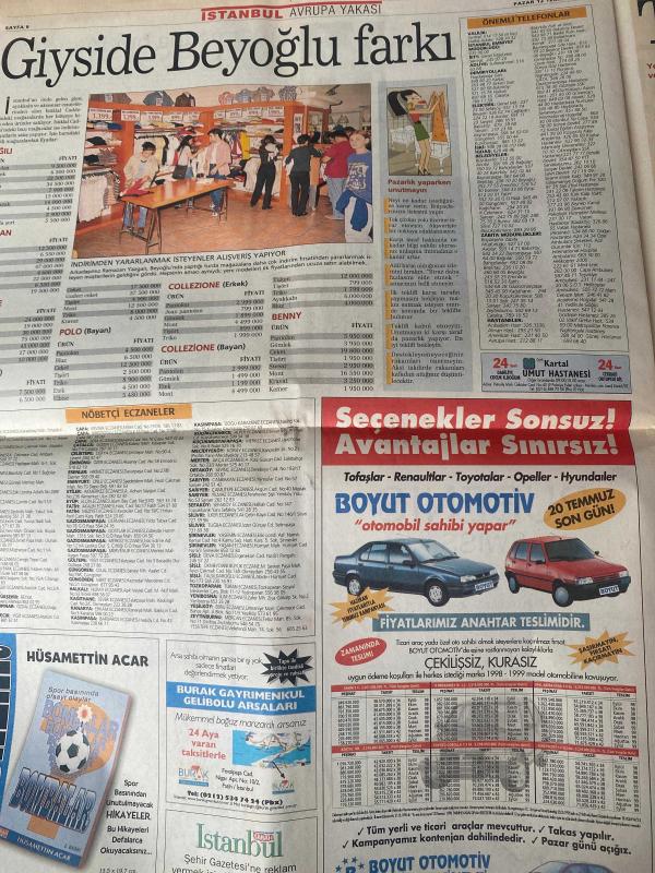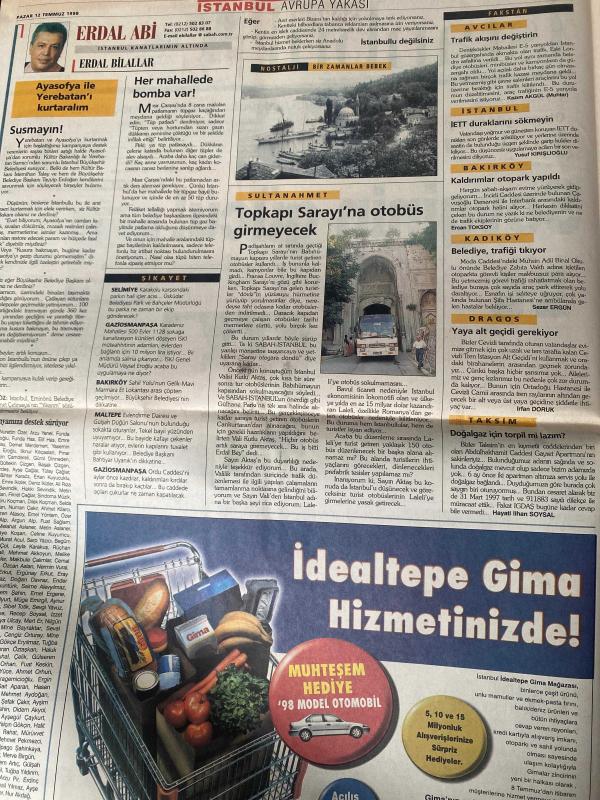 SABAH İSTANBUL GAZETESİ AVRUPA YAKASI GAZETESİ - 12 Temmuz 1998 -Kemal Yıldırım-Erdal Bilallar-Şenol Baştakar-Fakstan-Şikayet-nöbetçi eczaneler-Rezervasyon-Önemli Telefonlar-Seyran-Şişli Belediye başkanı Cüneyt akgün-Ex Şirketler grubu-Tuzla mercan-Recep Tayyip Erdoğan-Adnan Şenses-vali Kutluaktaş-Topkapı Sarayı-Yerebatan sarnıcı-İbrahim sarı-Gaziosmanpaşa-Bakırköy-Avcılar-dragos-taksim-bir zamanlar bebek-Opal optik-güney tatil köyü-Çetinkaya mağazaları- Caddebostan sahilindeki asırlık ağaçlardan bazıları kesildi-Charko-Golden Rock Swıss-Yeni Saray optik-optik saat-boyut otomotiv-giysi de Beyoğlu farkı-hüsamettin acar-Burak gayrimenkul-Rıfat Ilgaz kitabı-Bendevi Palandöken-İstoç depo oldu-Mustafa uzun-Hasan Satıroğlu-Hasan uzun-Cevdet yavuz-Recep kuzu-Fatih belediye başkanı Sadettin Tantan-Denizkent adlı eser, Kitap > Süreli Yayınlar > Gazeteler > Türkiye > Genel > Günlük kategorisinde İkinci El olarak satıştadır.