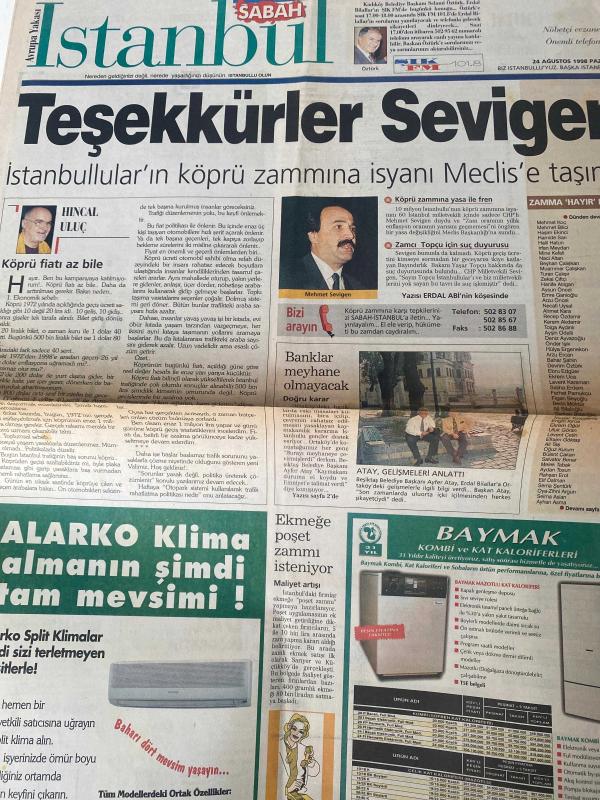 SABAH İSTANBUL GAZETESİ AVRUPA YAKASI GAZETESİ - 24 Ağustos 1998 -Kemal Yıldırım-Erdal Bilallar-Şenol Baştakar-Fakstan-Şikayet-nöbetçi eczaneler-Rezervasyon-Önemli Telefonlar-baymak kombi-Alarko kombi-hıncal Uluç-Mehmet Sevigen-zamma hayır diyenler-Beşiktaş belediye başkanı Ayfer ataş-Bahçelievler-Göztepe-Şehremini-İkitelli-Şişli-Üsküdar—Hisarüstü-Bağdat caddesi-Pendik akşam Lisesi-mavi Haliç koleji-Ataşehir Çocuk kulübü-gözen önlisans kursları- Öznur babaoğlu-Zehra Subaşı-Akif Yazıcıoğlu-Tunay Yücel-Bakırköy kartaltepe mahallesi-Cem Yılmaz-Sertab Erener-Özbim-Perfect Woman estetik klinik ve zayıflama merkezi adlı eser, Kitap > Süreli Yayınlar > Gazeteler > Türkiye > Genel > Günlük kategorisinde İkinci El olarak satıştadır.