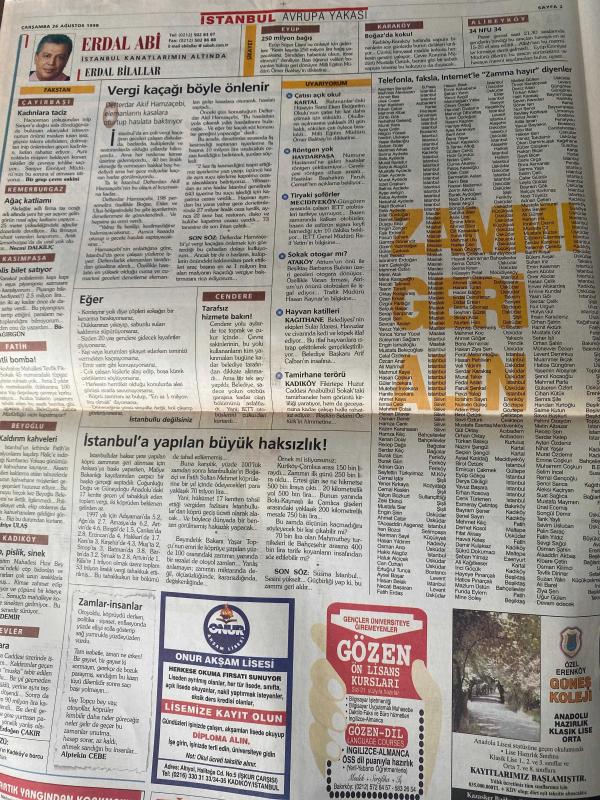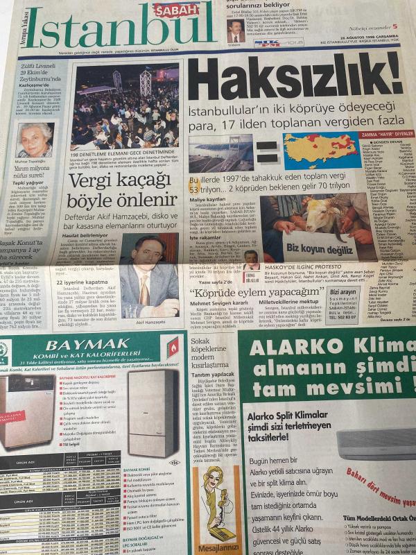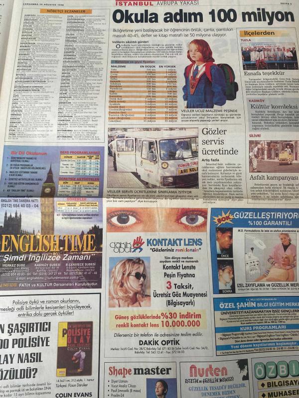 SABAH İSTANBUL GAZETESİ AVRUPA YAKASI GAZETESİ - 26 Ağustos 1998 -Kemal Yıldırım-Erdal Bilallar-Şenol Baştakar-Fakstan-Şikayet-nöbetçi eczaneler-Rezervasyon-Önemli Telefonlar-baymak kombi-Alarko kombi-Şişli etfal hastanesi başhekimi Doç. Dr. Bektaş Yıldırım-muhtar Emine topaloğlu-Akif hamzaçebi-zamma hayır diyenler-Mehmet Sevigen-Özel Yunus Emre Okulları-Eyüp-Karaköy-Alibeyköy-Kemerburgaz-Kasımpaşa-Beyoğlu-Onur akşam Lisesi-Pendik akşam Lisesi-mavi Haliç koleji-Mehmet Yıldız-Mustafa gökgöz-Faruk Tuncer-uluslar-yankı koleji-kontakt lens-English Time-STAR duş-net Holding- akaretler Sıraevler-Bakırköy belediye başkanı Ahmet Bahadırlı adlı eser, Kitap > Süreli Yayınlar > Gazeteler > Türkiye > Genel > Günlük kategorisinde İkinci El olarak satıştadır.