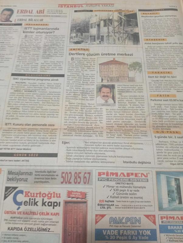 SABAH İSTANBUL GAZETESİ AVRUPA YAKASI GAZETESİ -30 haziran 1998- Hakan çalman-murat çiftçi-bilginercell-mahmut Açıksöz- yılmaz özdil-erdal Bilaller- Ahmet Çetinkaya- ramazan bal- Vahap Kurtoğlu- ergin Ekiz kuzu-lokman Yılmaz-Sed telefon-binapen-pimapen-stanley-pakpen-gençtur-kurtoğlu çelik kapı-kuz optik-özel efdal ana ve ilköğretim okulu-lem-atli karınca yaz okulu-vem dershaneleri- koşuyolu English-aktel adlı eser, Kitap > Süreli Yayınlar > Gazeteler > Türkiye > Genel > Günlük kategorisinde İkinci El olarak satıştadır.
