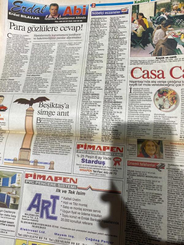 SABAH İSTANBUL GAZETESİ KADIKÖY ANADOLU YAKASI GAZETESİ - 15 Mart 1997 -Erdal Bilallar-Kemal Yıldırım-Özel Servis Numaraları-Radyolarımız-Nöbetçi eczaneler-Sinema-Önemli Telefonlar-Rezervasyon-Asayiş Raporu-Ezan Vakitleri-Pinokyo-Evıta-Bir kadının portresi-Nıcole kıdman-Barbara Hershey-John Malkovıch-vadide 2 gün-otogargara-yılmaz erdoğan-Demet akbağ-Sinan bengier-Rüstem batum-Afacanlar sirki-Red kit-Selami Öztürk-esmer mobilya-Cenmax-Beşiktaşa simge anıt-Nişantaşı casa cafe-Süleyman Düvenci-Sindrella-shine-süleyman çelik mobilya-sihir mobilya-zafer mobilya-Alimob-göztepe ssk hastahanesi adlı eser, Kitap > Süreli Yayınlar > Gazeteler > Türkiye > Genel > Günlük kategorisinde İkinci El olarak satıştadır.