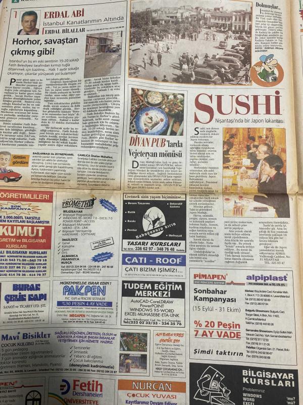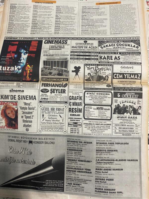SABAH İSTANBUL GAZETESİ KADIKÖY YAKASI GAZETESİ - 1 Ekim 1997 -erdal Bilallar-filiz Güler-ramazan Yazgan-şenol baştakar-eczaneler-önemli telefonlar-rezervasyon-tahsin Salihoğlu-Kemal Yıldırım-Selami Öztürk-bahtiyar uyanık-Nurettin Şen-Ankara’ya trenle gidiş 1.600.000 TL-Gazi’ye jest-suşi-divan-Tuncer Turan-altyapı koordinasyon daire başkanı Mustafa Ilıcalı-Teoman Erol-eyüboğlu koleji öğrencisi Ozan Ertürk-Pembe panter Çocuk evi- Kenan erçetin göz-kış aylarında sinemaya doyuyoruz yaz aylarında hasretiz-Eftal anaokulu-Çöp adam Çocuk kulübü-Anna Karenina-tolstoy-Bora otomotiv-Zeki Müren-Suat Sungur-Erol akkır-Fevzi deli Ömeroğlu-Muammer Coşkun-CINEMASS - GRAND PRIX MALTEPE'DE AÇILDI - TİYATRO MİE ŞAKACl ÇOCUKLAR - DORMEN TİYATROSU KARE AS - YENİ BAŞTAN - CEM YILMAZ - ORTAOYUNCULAR 97 FERHANGİ ŞEYLER - GÜZEL SANATLARA HAZIRLIK GRAFİK İÇ MİMARİ RESİM KURSLARI - ETKİLİ KONUŞMA -SİNEMA EKİM'DE SİNEMA adlı eser, Kitap > Süreli Yayınlar > Gazeteler > Türkiye > Genel > Günlük kategorisinde İkinci El olarak satıştadır.