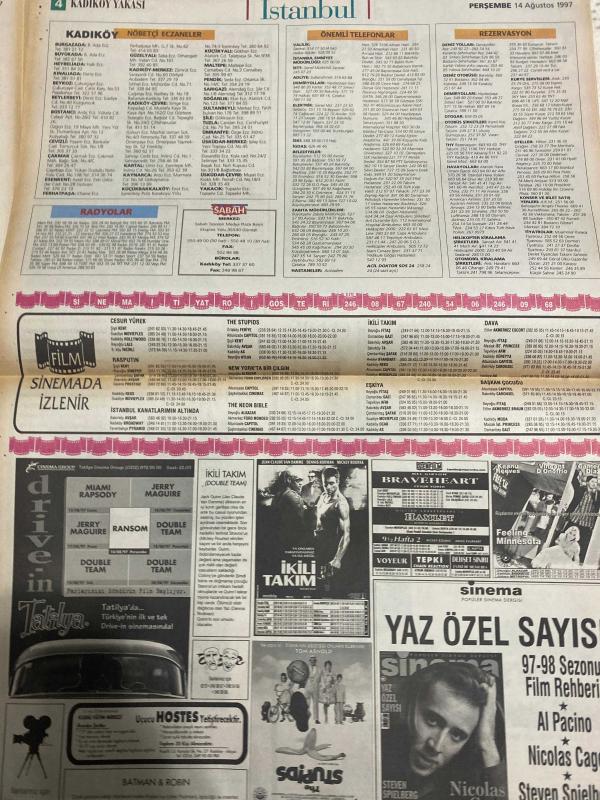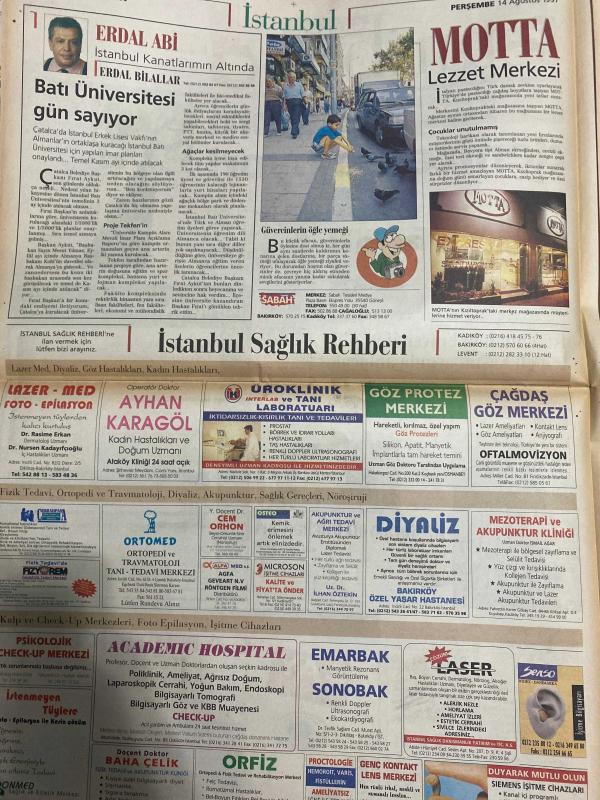 SABAH İSTANBUL GAZETESİ KADIKÖY YAKASI GAZETESİ - 14 Ağustos 1997 -erdal Bilallar-filiz Güler-ramazan Yazgan-şenol baştakar-eczaneler-önemli telefonlar-rezervasyon-tellioğlu arsa ofisi-baymak klima-Kemal Yıldırım-Yelda Kohen-İstanbul Üniversitesi-mosaıc center-göz protez merkezi-Çağdaş göz merkezi-Mehmet Özışık-İstanbul’un yeni gözdesi-Çibanbaşı-me lezzet-mutlu günler-saniye ergönül-Bahçelievler Belediyesi-yaşam hastanesi-stard-Veli Sarıboğa-İstanbul’da 650.000 kişi akbil kullanıyor Sezen Aksu-ayna konseri-göz protez merkezi - çağdaş göz merkezi - ortomed - prof cem orhon - diyaliz - mezoterapi ve akupunktur kliniği - barışköy hastanesi - emarbak - sonobak - laser - academic hospital - psikolojik check-up merkezi - bonme-ikili takim - yaz özel sayisi 97-98 sezonu film rehberi - braveheart - festivalde bir minik filim - uyuyan hostes - batman & robin adlı eser, Kitap > Süreli Yayınlar > Gazeteler > Türkiye > Genel > Günlük kategorisinde İkinci El olarak satıştadır.