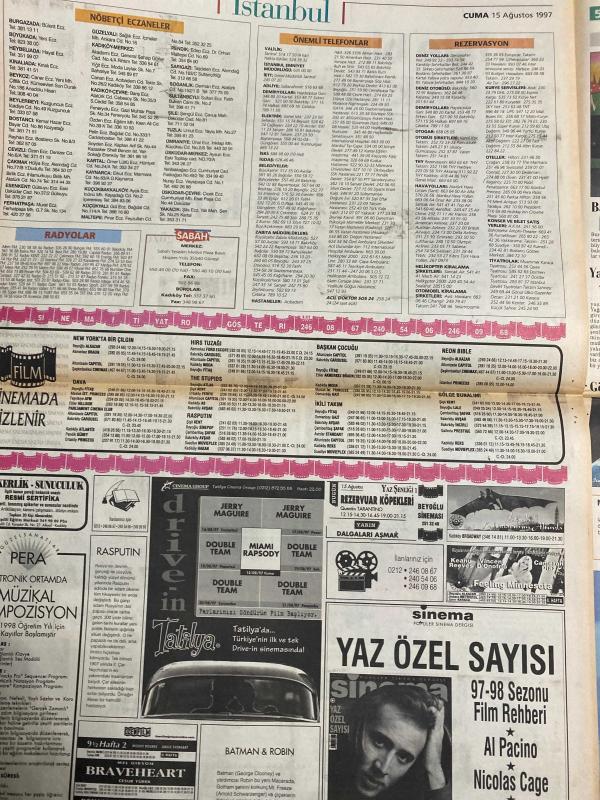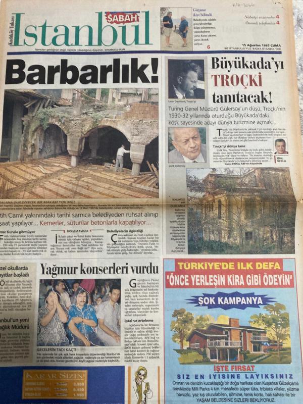 SABAH İSTANBUL GAZETESİ KADIKÖY YAKASI GAZETESİ - 15 Ağustos 1997 -erdal Bilallar-filiz Güler-şenol baştakar-Ramazan Yazgan-eczaneler-önemli telefonlar-rezervasyon-Troçki-Leon Davidoviç-çelik gülersoy-Fatih cami-bora otomotiv-Montignac club house-Yelda Kohen-Mosaıc center-Gima ataşehir-özel hekimoğlu koleji-Dilan’ın çiçek ve limuzin sürprizi-kiler hipermarketleri-Sertab Erener-Emel Sayın-aşkın Nur Yengi-Gürpınar sahili-firatpen-Bora Otomotiv-Duşakabin-Pakpen-sinema yaz özel sayisi 97-98 sezonu film rehberi - rasputin - cesur yürek - batman & robin adlı eser, Kitap > Süreli Yayınlar > Gazeteler > Türkiye > Genel > Günlük kategorisinde İkinci El olarak satıştadır.