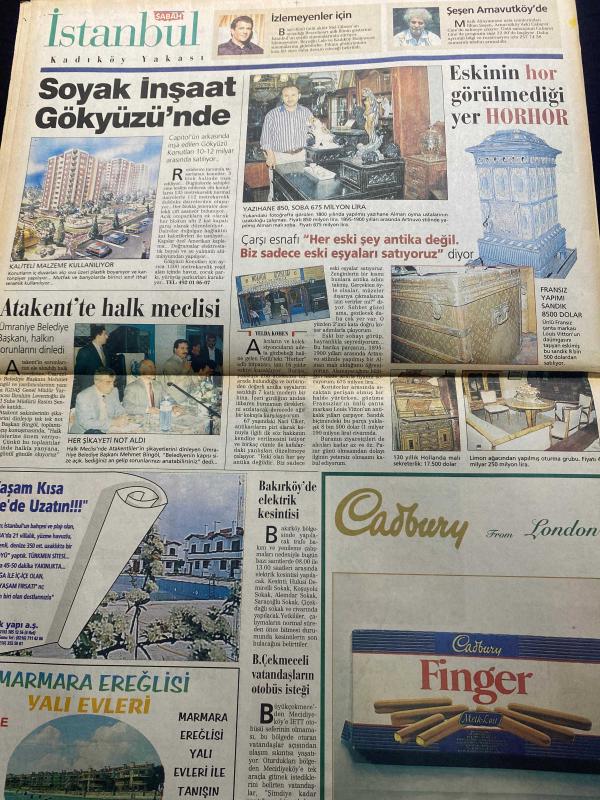 SABAH İSTANBUL GAZETESİ KADIKÖY YAKASI GAZETESİ - 26 Haziran 1997 -erdal Bilallar-filiz Güler-ramazan Yazgan-şenol baştakar-eczaneler-önemli telefonlar-Film Sinemada izlenir-baymak klima-tellioğlu arsa ofisi-Yelda Kohen-Büyükşehir Belediyesi köprüler müdürü Fazıl Karasu-unkapanı köprüsü-Galata köprüsü-Gaziosmanpaşa’da bir gün elektrik kesintisi olacak-Capitol-Rodeo Drive açıldı-Emre sünnetlik-forum Doğa bitkilerle sağlık merkezi-condor carpets-başkan devede pislik derede-Arif Calp-Spşce girls İstanbul’u tanıtacak-İstanbul merkezi-eşkiya-Şener Şen-Müjdat gezen sanat merkezi-Matilda-The rich man’s Wife-Imperial gıda-İlhan Şeşen-Mel gibson adlı eser, Kitap > Süreli Yayınlar > Gazeteler > Türkiye > Genel > Günlük kategorisinde İkinci El olarak satıştadır.