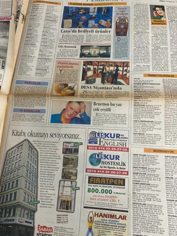 SABAH İSTANBUL GAZETESİ KADIKÖY YAKASI GAZETESİ - 3 Haziran 1997 -erdal Bilallar-filiz Güler-ramazan Yazgan-şenol baştakar-eczaneler-önemli telefonlar-Film Sinemada izlenir-Yelda Kohen-Nurten Ertul-Yılmaz Özdil-Alaaddin torun-Fatih Terim-Mutlu günler-Selçuk Çan-Haliç-Murat belge-İstanbul’un fahri belediye başkanı-Celâl Bayar-Adnan Menderes-Desa Nişantaşı-feridun karakaya-Ahmet uğurlu-Beyoğlu Mahmut Şevket Paşa mahallesi sakinleri-Ziebart tidycar-dengemek beltaş alışveriş merkezi-pendik akşam lisesi-asil doğalgaz-ikili oyun-geçmişten ruhlar-crash-shine-the arrival-hamlet- adlı eser, Kitap > Süreli Yayınlar > Gazeteler > Türkiye > Genel > Günlük kategorisinde İkinci El olarak satıştadır.