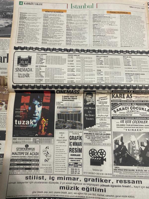SABAH İSTANBUL GAZETESİ KADIKÖY YAKASI GAZETESİ - 30 Eylül 1997 -erdal Bilallar-filiz Güler-ramazan Yazgan-şenol baştakar-eczaneler-önemli telefonlar-rezervasyon-Disan amerikan kapı-ziebart tidy car-El nino doğalgazsız yakalayacak-bilgisayarlı pasta-Selami Öztürk-Şık FM-p-Pendik akşam Lisesi-Burak Çelik kapı-inci Barış-fetih Dershaneleri-Yusuf tülin-Murat Keklikçi-nurten Ertul-tuzak-Sinema ansiklopedisi-sürpriz babalar-mektup geldi-Ali Özgentürk-Tarık Akan-zişan uğurlu-filiz Sinemada-Mehmet ergin Soyarslan-Starduş-Öznur fidan-ilk çizgi Çocukevi-Ferhan Şensoy-dormen tiyatrosu-Volkan Severcan-CINEMASS - DORMEN TİYATROSU KARE AS - ŞAKACl ÇOCUKLAR - TİYATRO MİE - UYGULAMALI SANATLAR ÇALIŞMASI - GRAND PRIX SİNEMALARI MALTEPE'DE AÇILDI - SMILLA VE KARLAR - GRAFİK İÇ MİMARİ RESİM KURSLARI - ABDI İPEKÇİ SPOR SALONU - STİLİSTİK, İÇ MİMARLIK, GRAFİKER, RESSAM - MÜZİK EĞİTİMİ - İSTASYON SANAT MERKEZİ adlı eser, Kitap > Süreli Yayınlar > Gazeteler > Türkiye > Genel > Günlük kategorisinde İkinci El olarak satıştadır.
